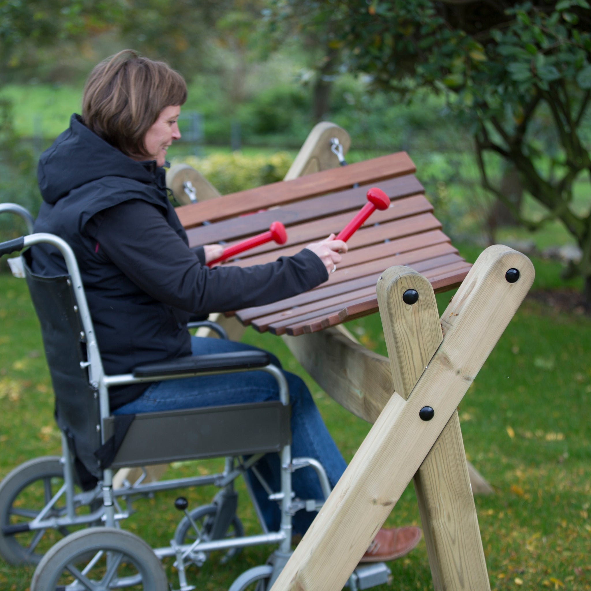 Marimbaer er utendørs tangentinstrumenter med varme, klare toner som gjør det lett å høre både melodi og harmonier. Når brukere slår platene med køller, skapes lyder som både er umiddelbart musikalske og intuitive å jobbe med – selv for dem uten musikalsk erfaring. Dette gjør marimbaer spesielt egnet for å arbeide med rytme, melodi, interaksjon og lytting i praksis. I denne kategorien finner du utendørs marimbaer som passer for skoler, barnehager, spesialområder, eldreomsorg, samt parker og urbane områder. De kan brukes til alt fra musikktimer, strukturerte kurs og felles interaksjon til fri lek og spontane musikalske møter i hverdagen.