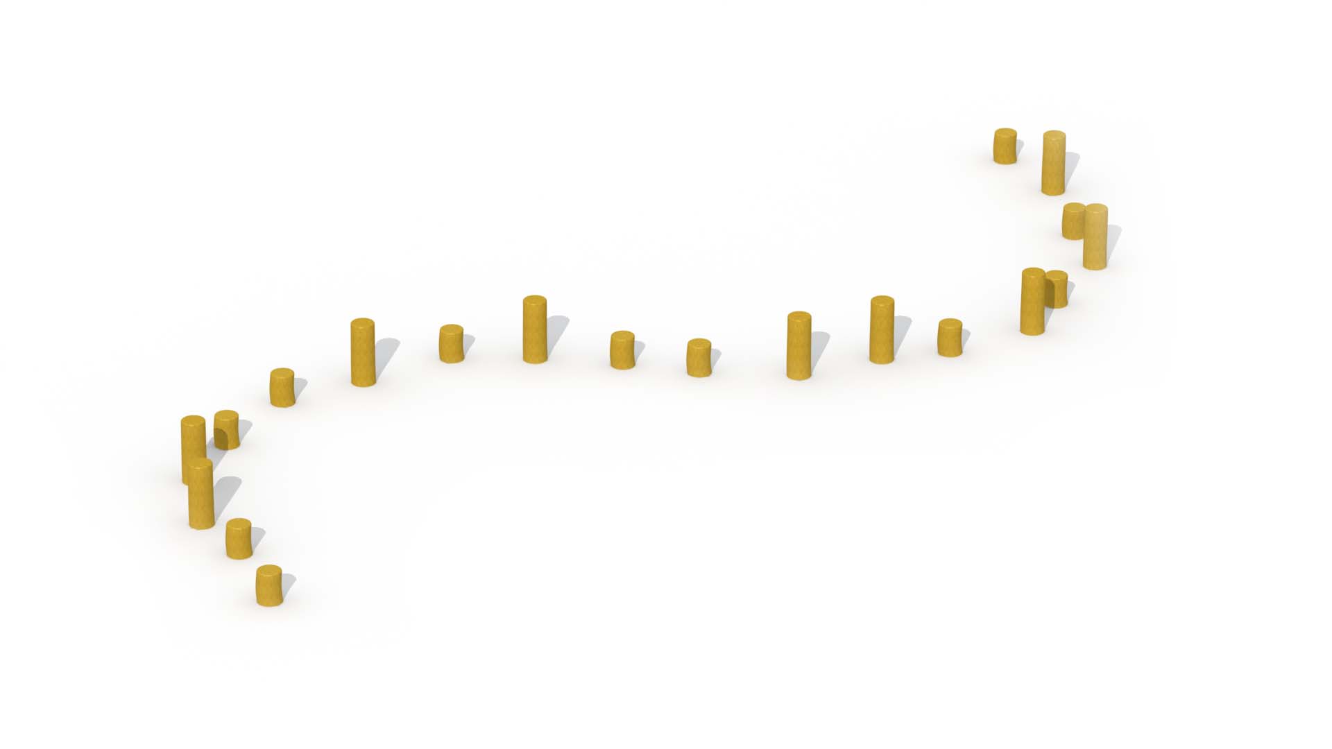 Balansesti for barn i alderen 4 til 12 år. Stien består av korte bjelker (0,8 eller 1 m høye).