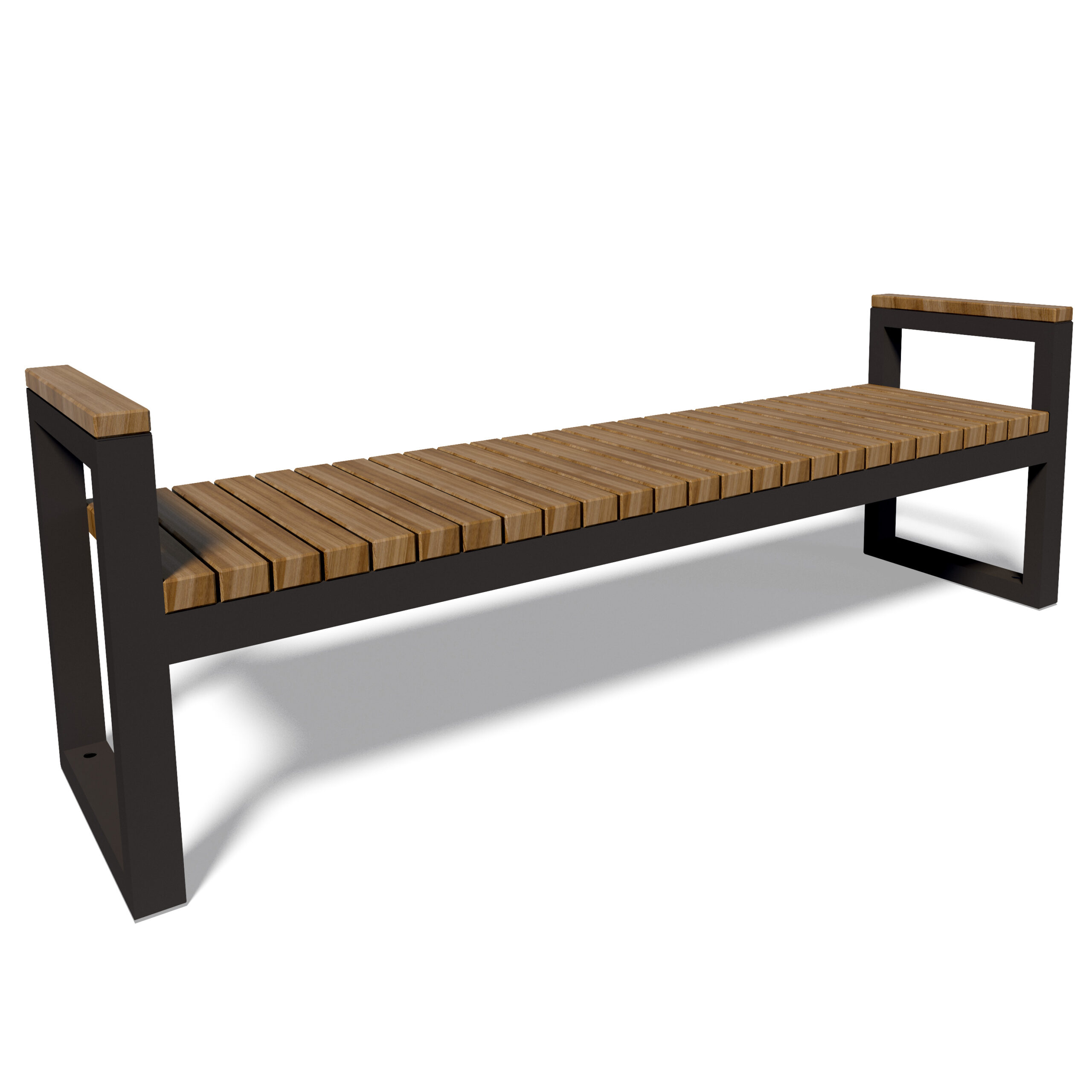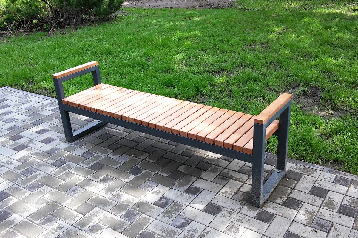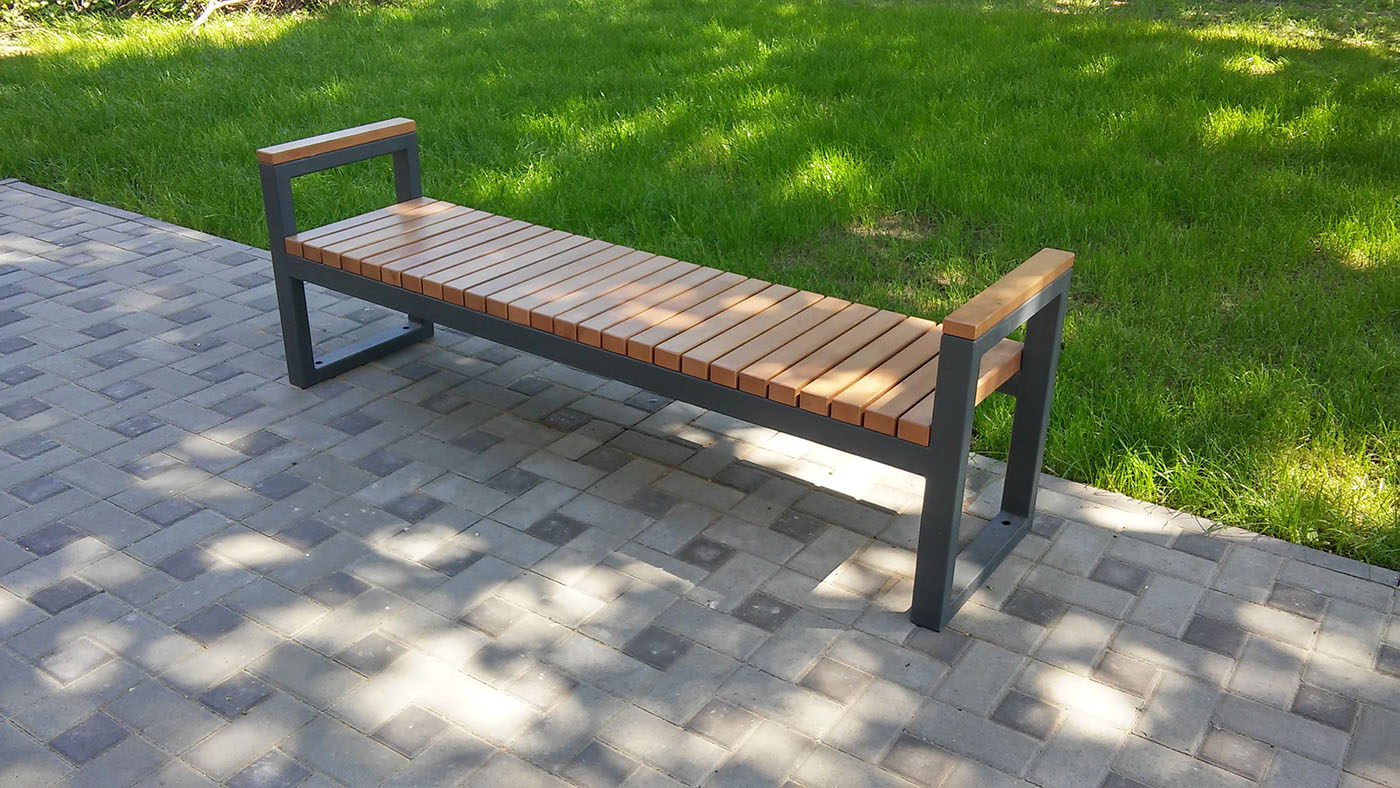 Benken er laget av en høykvalitets stålprofil som tåler 300 kg belastning og treverk. Metalldeler males med pulvermaling, og tredelen – med flere lag lakk, noe som forhindrer aldring av treverket, blokkerer utviklingen av korrosjon og hindrer fuktighet i å slippe gjennom. Benken installeres ved å støpe eller skru.