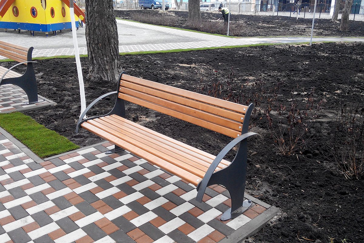 Benken er laget av en høykvalitets stålprofil som tåler betydelig belastning og treverk. Metalldeler er malt med pulvermaling. Benken installeres ved å støpe eller skru.