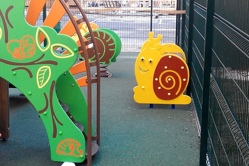 Dette utstyret har to mål: å være en praktisk måte for ansatte i barnehagen å passe på barna, mens de leker uforsiktig; og utfylle utsiden av en lekeplass. Barnebenken utfører disse to oppgavene briljant. Dette sittestedet er utstyrt med et bord, noe som gjør nsattes fritidsaktivitet langt mer komfortabel.