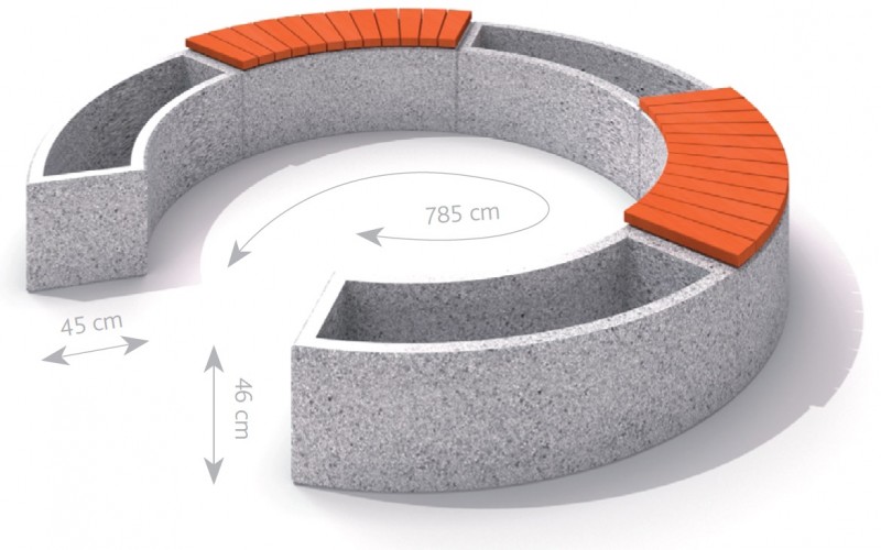 Skyllet betongbenk finnes i 7 farger. Setet er laget av Gran. Benken er et godt valg for komfortable og pene bymøbler til parkering, estete osv. Konstruksjonen av denne benken gir inntrykk av lys og estetisk møbel, best egnet for urbane rom. * Fargen på korningen på gjengivelsen tilsvarer nr. 3 (Premium) på fargekortet.