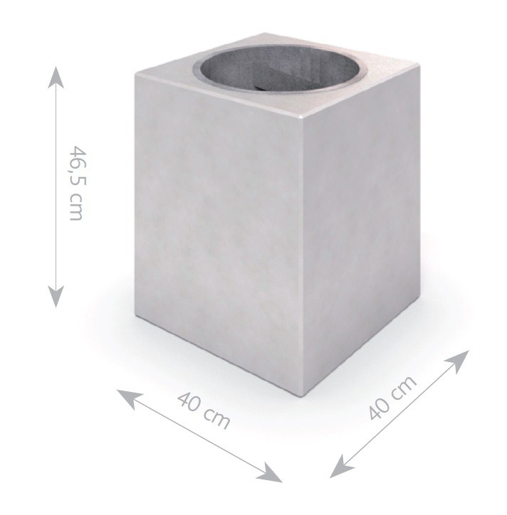 «Urban» firkantet søppelbøtte laget av hvit eller grå deco-betong. Inne i en bøtte laget av galvanisert stålplate med askebeger.