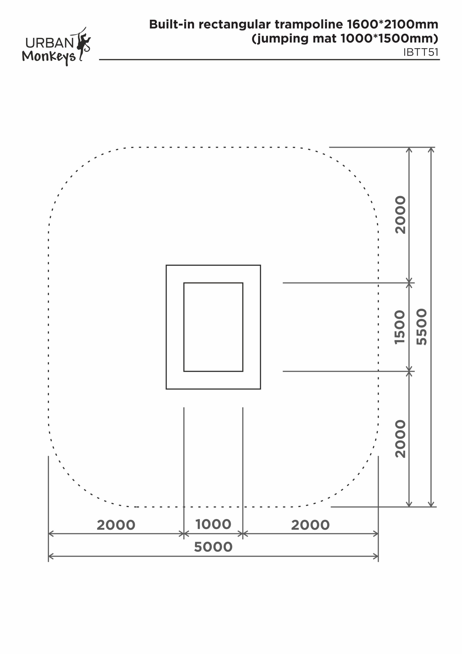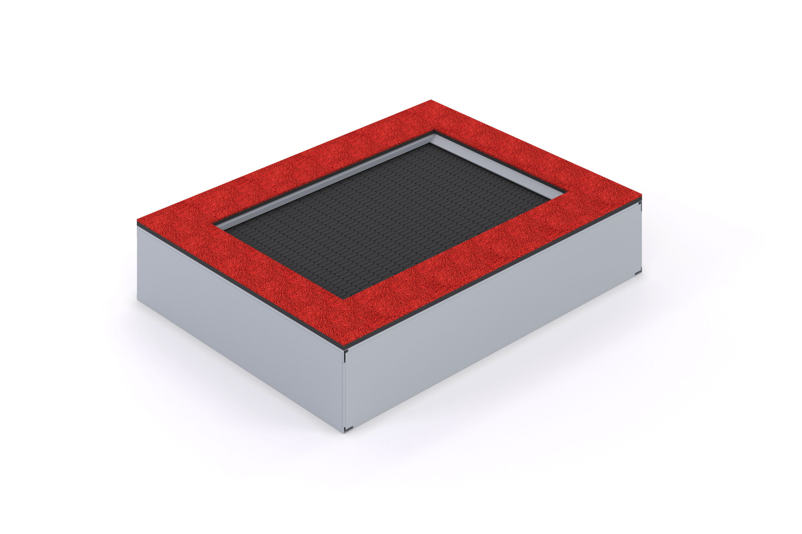 Innebygd rektangulær trampoline. Hoppeflate 1000x1500mm. Den spesielle formen på lamellen skaper en duk med små åpninger som forhindrer at søppel og smuss kommer inn. Farge: Rød eller grønn. Andre farger på forespørsel.