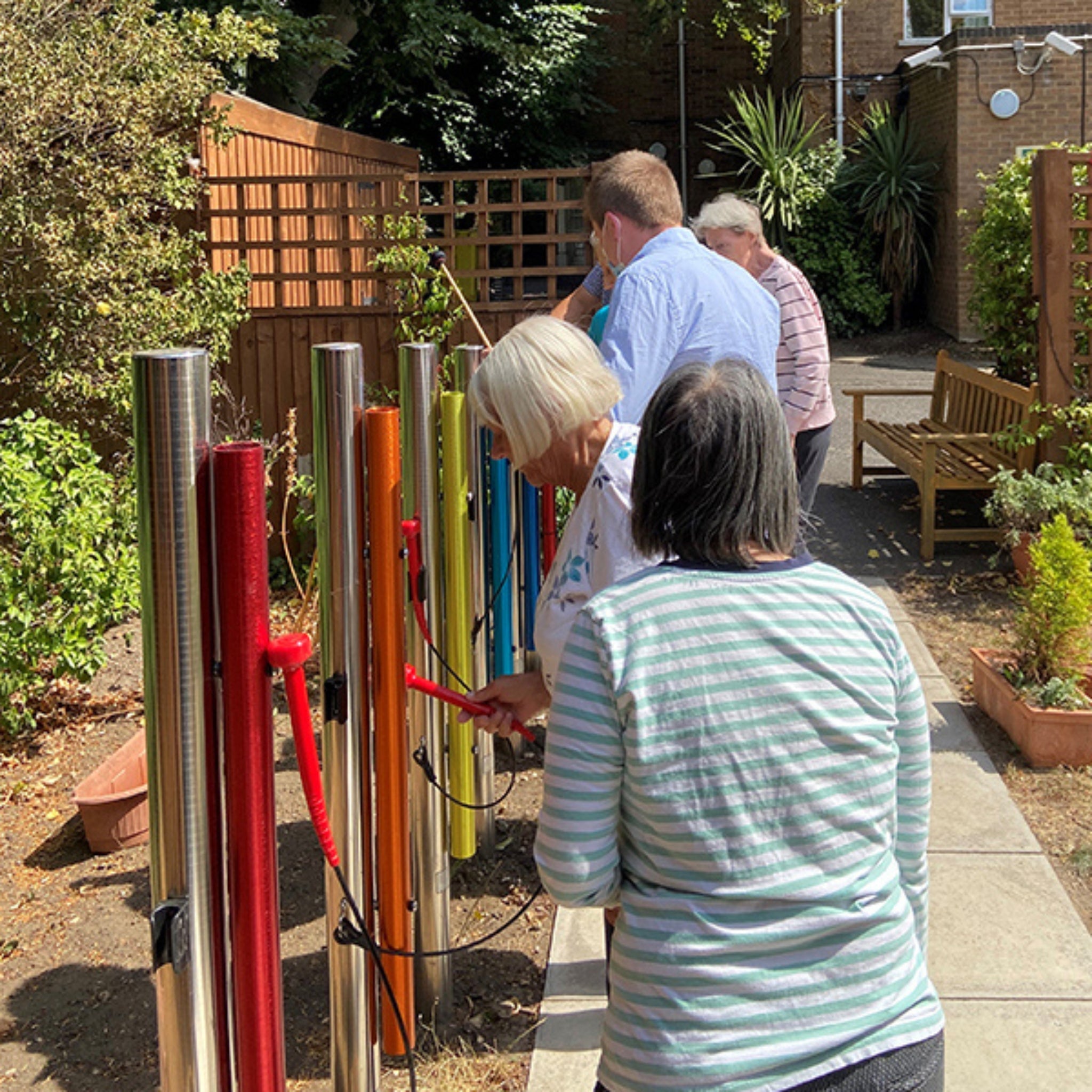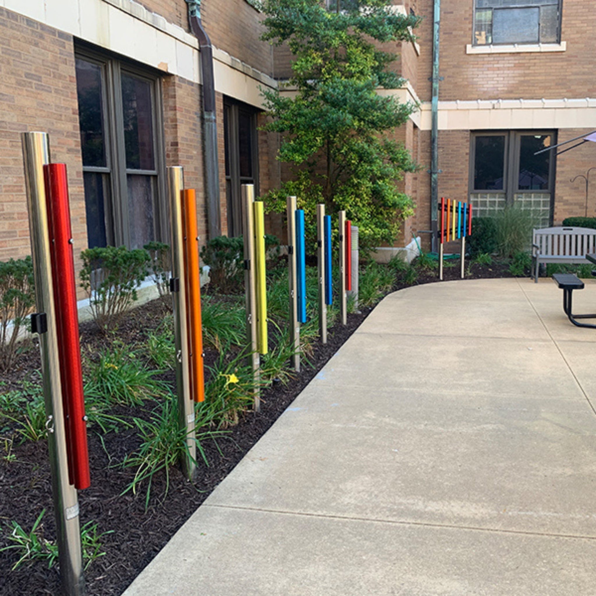Klokkespill og bjeller er utendørs musikkinstrumenter som skaper rene, klare toner og lange, etterklangsfulle lyder. Når pipene eller bjellene slås an, skapes harmoniske lydlandskap, som kan høres både på avstand og oppleves på nært hold som en rolig, sanselig lydopplevelse. De inviterer til nysgjerrighet, ettertanke og små musikalske møter – også for dem som vanligvis ikke føler seg komfortable med å spille musikk. Klokkespill og bjeller er spesielt egnet når du ønsker å jobbe med sensorisk integrasjon, ro og tilstedeværelse, eller skape små lydsoner hvor brukerne kan lytte, eksperimentere og være kreative i sitt eget tempo. De fungerer like godt på en skolegård, på en sti, i en sansehage eller som et atmosfærisk element i offentlige rom.
