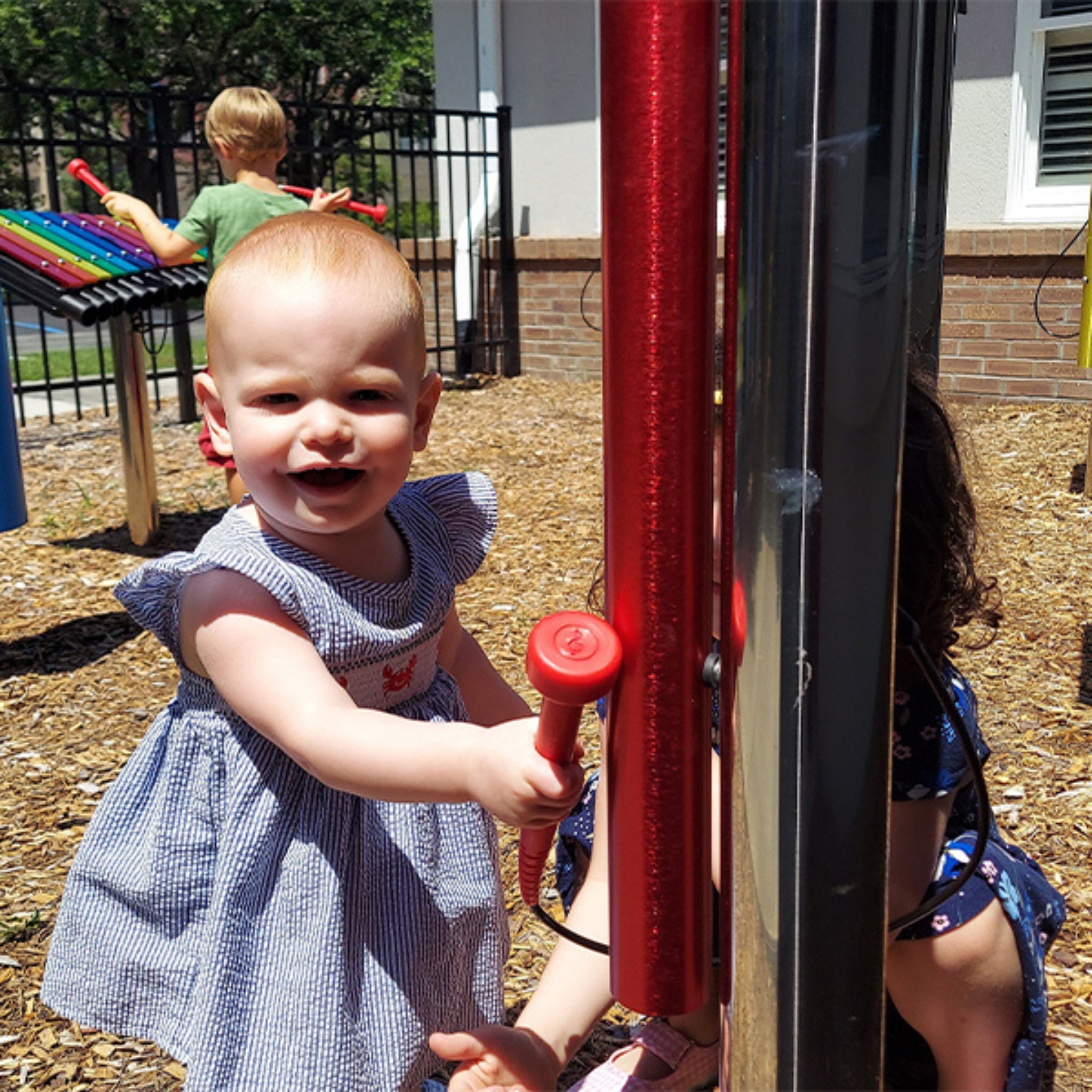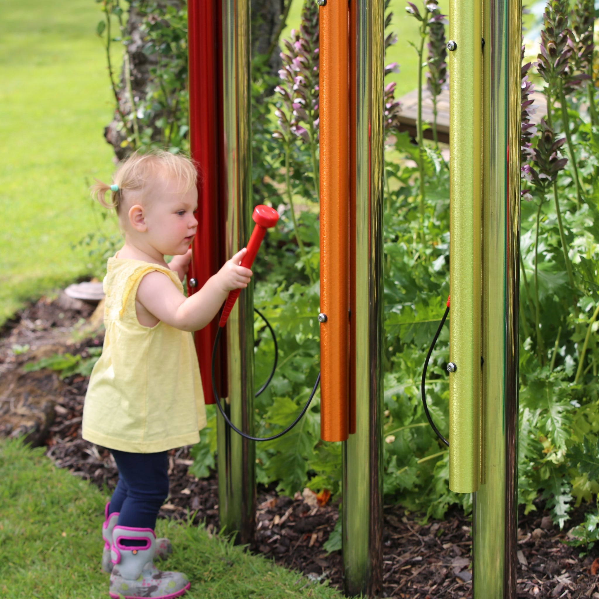 Klokkespill og bjeller er utendørs musikkinstrumenter som skaper rene, klare toner og lange, etterklangsfulle lyder. Når pipene eller bjellene slås an, skapes harmoniske lydlandskap, som kan høres både på avstand og oppleves på nært hold som en rolig, sanselig lydopplevelse. De inviterer til nysgjerrighet, ettertanke og små musikalske møter – også for dem som vanligvis ikke føler seg komfortable med å spille musikk. Klokkespill og bjeller er spesielt egnet når du ønsker å jobbe med sensorisk integrasjon, ro og tilstedeværelse, eller skape små lydsoner hvor brukerne kan lytte, eksperimentere og være kreative i sitt eget tempo. De fungerer like godt på en skolegård, på en sti, i en sansehage eller som et atmosfærisk element i offentlige rom.