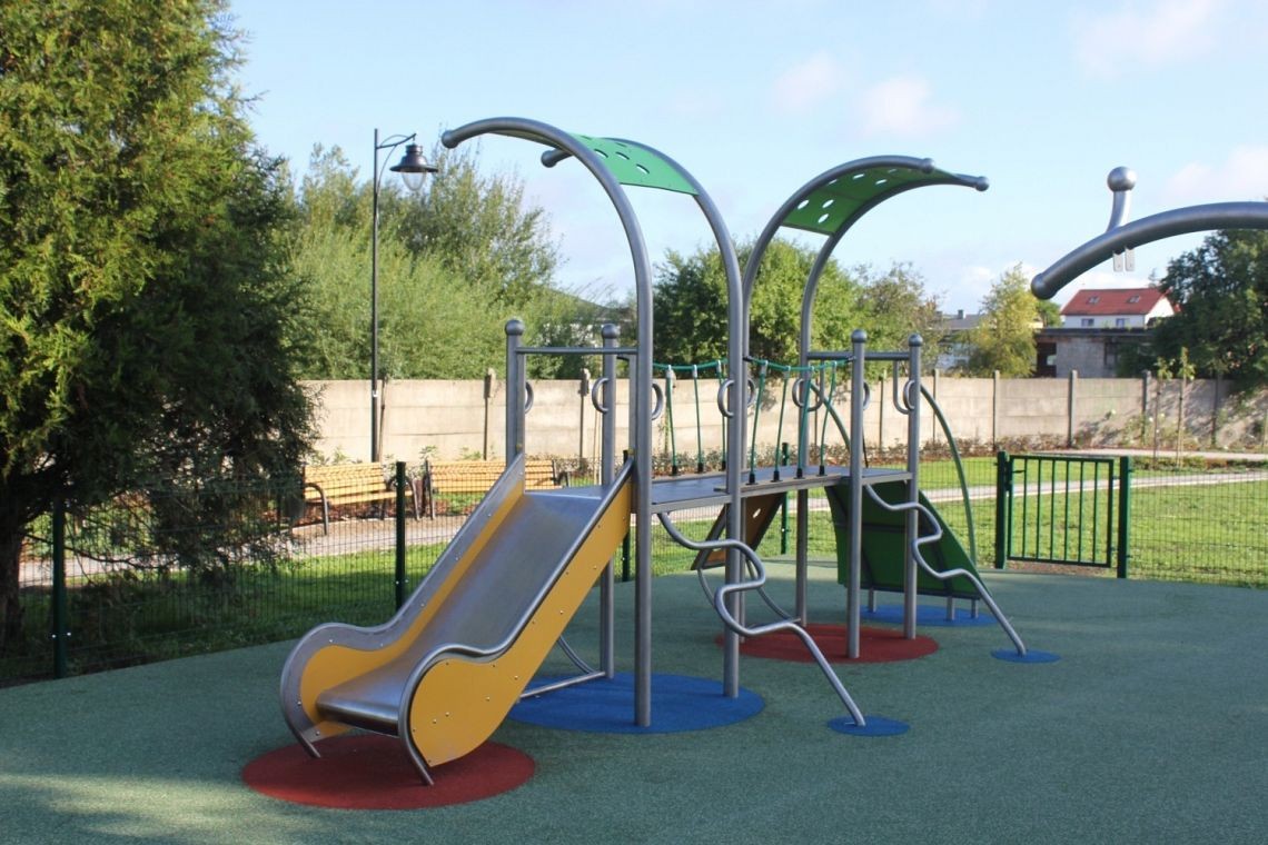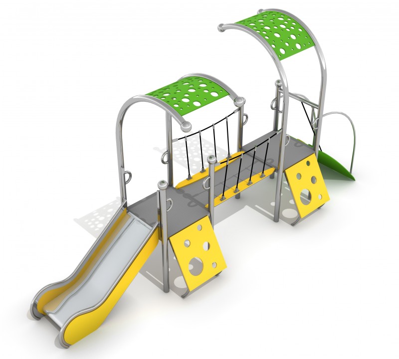 Et fargerikt lekeapparat med to tårn og en sklie, en bro og et åpent tak. Designet henter inspirasjon fra formen til en snegle. En høyytelses, værbestandig sveiset rustfritt stålkonstruksjon (ingen klemmer brukt). Stolpene er ferdigstilt med sfæriske dekorative elementer slik at apparatet ligner sneglehorn. Veggene i sklien, tårnet og rekkverkene er laget av HDPE-plater. Gulvet er laget av et HPL-panel med en sklisikker tekstur, som sikrer trygg bruk og forhindrer at det varmes opp i solen og fryser lett om vinteren. Fargerike, små lekeplasser dedikert til små barn. Alle rustfrie Limako-produkter er tilgjengelige i galvanisert og pulverlakkert versjon.