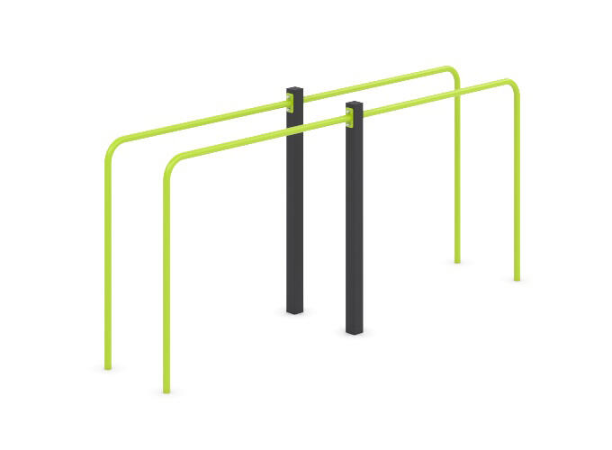 Doble parallellstenger består av 4 tverrstenger med en lengde på 1500 mm og 4 søyler med en høyde på 1400 mm. Velg mellom 12 standard farger. Andre farger på forespørsel.