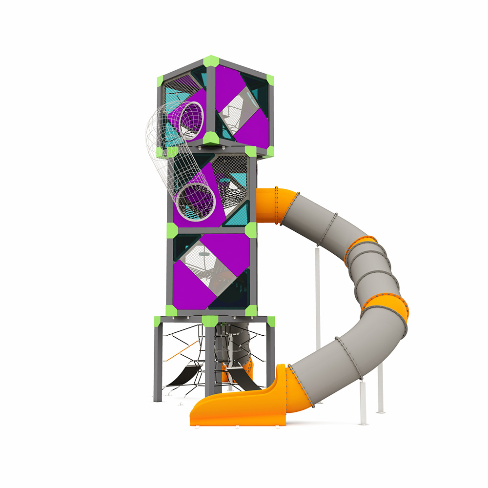 CUBE-serien er inspirert av modulær arkitektur som kombinerer lekens dynamikk med funksjonell design. Strukturene er bygd opp av sammenkoblede kuber, som skaper vertikale rom fulle av eventyr. De oppmuntrer til utforskning, balanse og koordinasjon, og fremmer fysisk og kognitiv utvikling. Innvendig kan barn klatre i klatrenett, gummiknuter og tekstilpresenninger som stimulerer aktiv lek og motorisk utvikling.