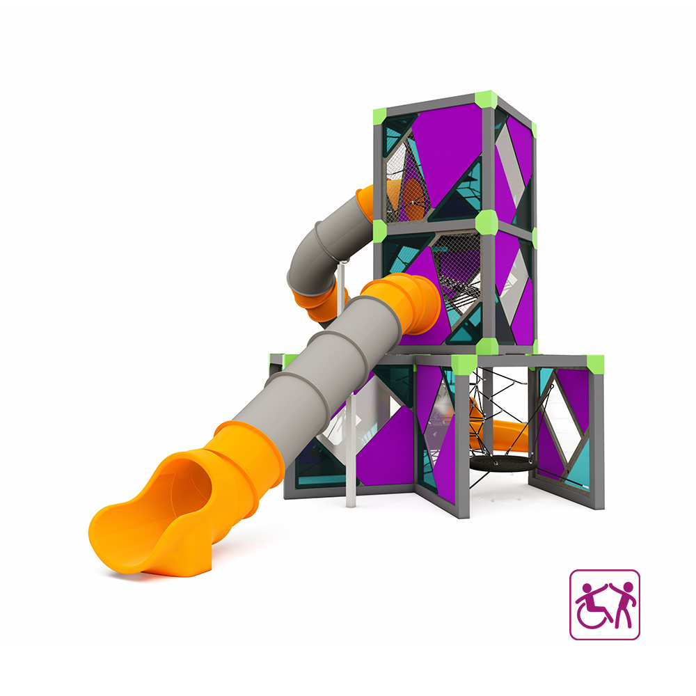 CUBE-serien er inspirert av modulær arkitektur som kombinerer lekens dynamikk med funksjonell design. Strukturene er bygd opp av sammenkoblede kuber, som skaper vertikale rom fulle av eventyr. De oppmuntrer til utforskning, balanse og koordinasjon, og fremmer fysisk og kognitiv utvikling. Innvendig kan barn klatre i klatrenett, gummiknuter og tekstilpresenninger som stimulerer aktiv lek og motorisk utvikling.