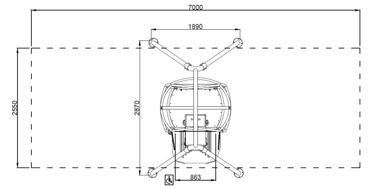 | Sikkerhetssone (LxB mm) | 7000×2870 |