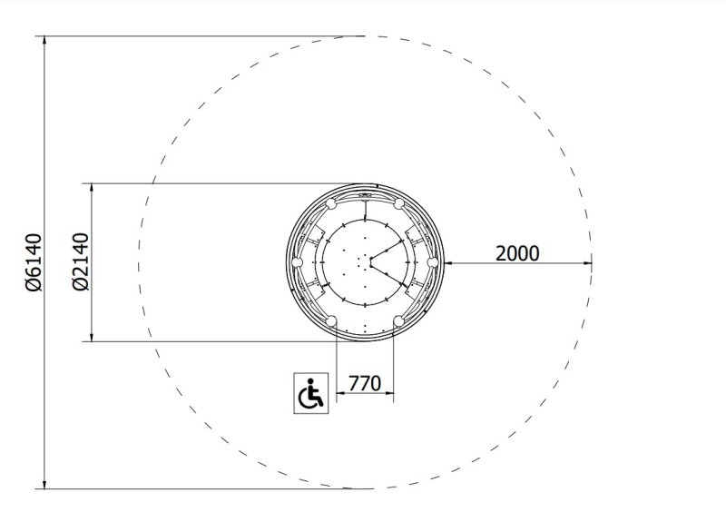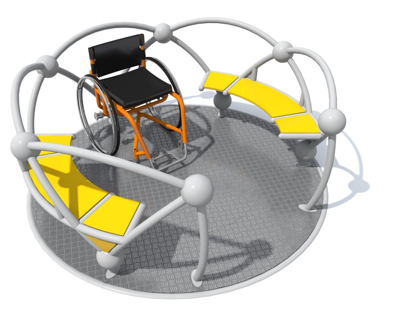 Inkluderende skarusell designet for å romme én person i rullestol og seks personer sittende på benker samtidig. Karusellen er designet med maksimal sikkerhet og komfort i tankene, og betjenes av en person utenfor, noe som sikrer full kontroll over turen. Den moderne designen, som ligner et atom, passer perfekt inn i by- eller parkområder.