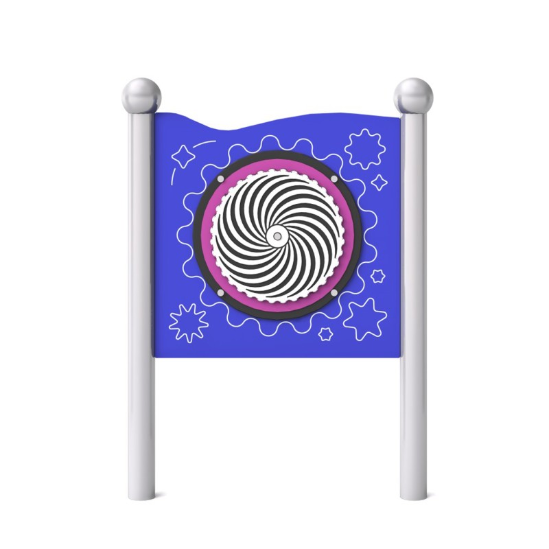 Et sansetavle designet for kreativ lek, tilpasset for bruk av barn i rullestol. Leketøyet har et brett med en roterende skive som viser et spiralmønster som tiltrekker oppmerksomhet og stimulerer visuell persepsjon. Det bevegelige elementet engasjerer barna i lek og oppmuntrer til samhandling. Dette er et unikt produkt som ikke bare underholder, men også støtter barnets sensoriske utvikling.