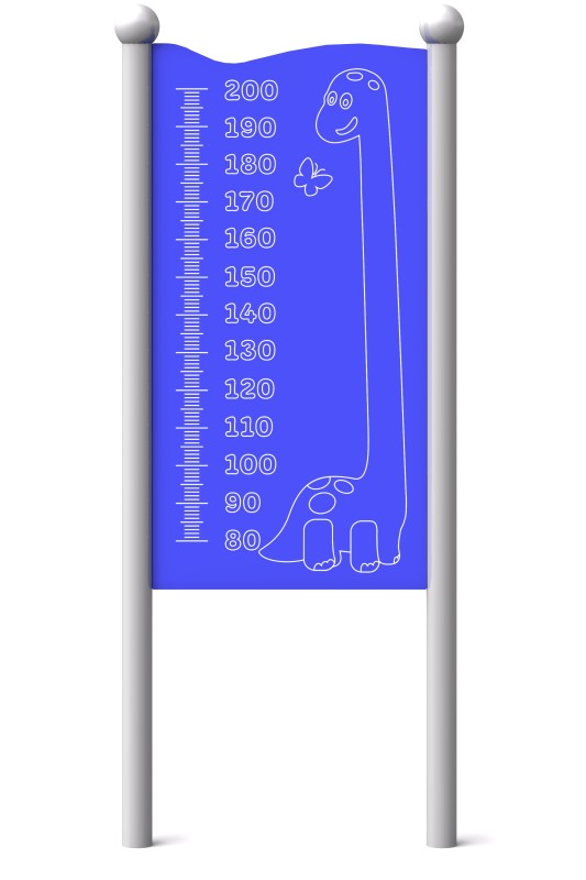 Undervisningstavle designet for kreativ lek, egnet for bruk av barn i rullestol. Leken har en tavle med en dinosaurutskjæring og en høydemåler [cm]. Dette unike produktet utdanner ikke bare, men støtter også barnets sensoriske utvikling.