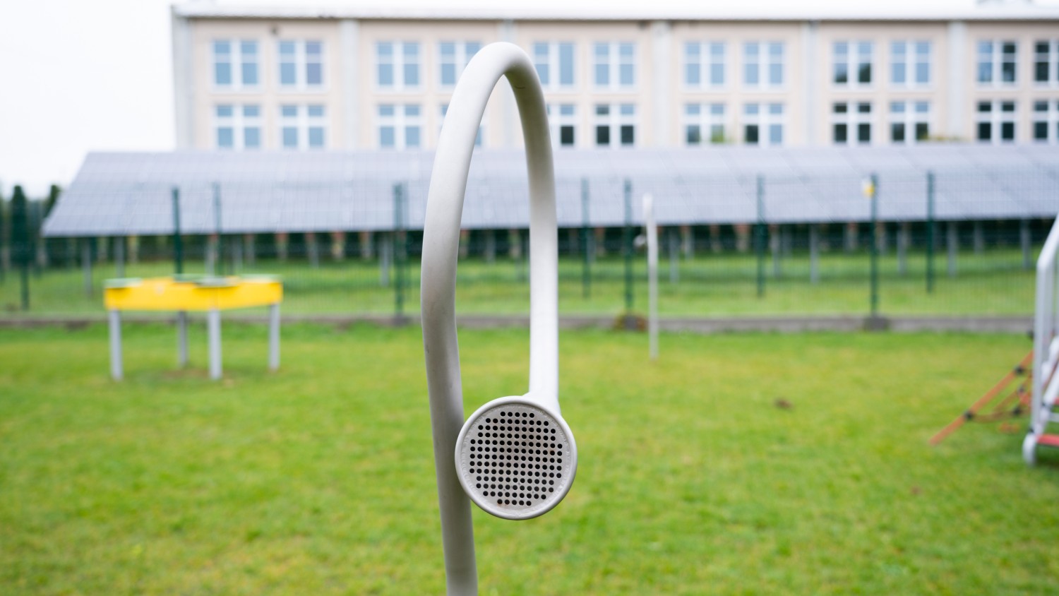 «Strengtelefon» Lyden overføres ved hjelp av to hodetelefoner formet som vridde trompeter, koblet sammen med et underjordisk rør. Maksimal avstand mellom hodetelefonene er 10 m.