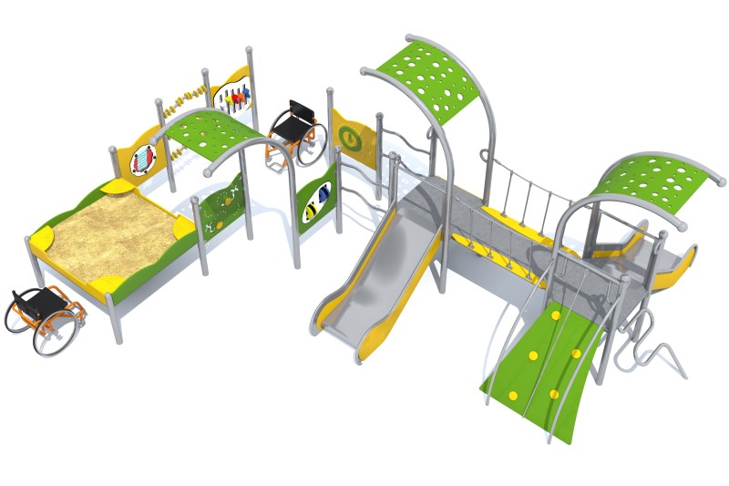 Inkluderende lekeapparater er utviklet for å gi barn med ulike forutsetninger mulighet til å delta i lek på like vilkår. Apparatenes utforming legger til rette for god tilgjengelighet, trygge bevegelser og varierte aktiviteter som stimulerer motorikk, balanse, koordinasjon og sanseopplevelser. Løsningene kan inkludere ramper, brede plattformer, lave innganger, støttehåndtak og sensoriske elementer som gjør det enklere for flere barn å delta samtidig. Dette bidrar til sosial samhandling, mestringsfølelse og felles lek på tvers av alder og funksjonsnivå.