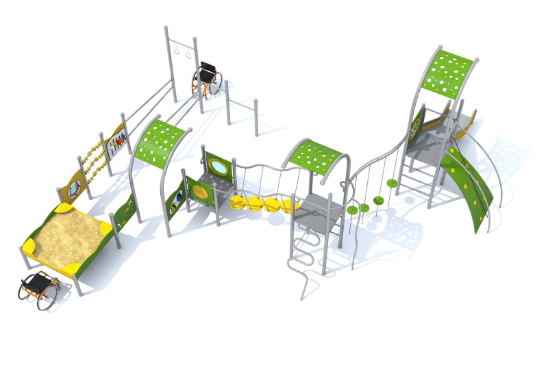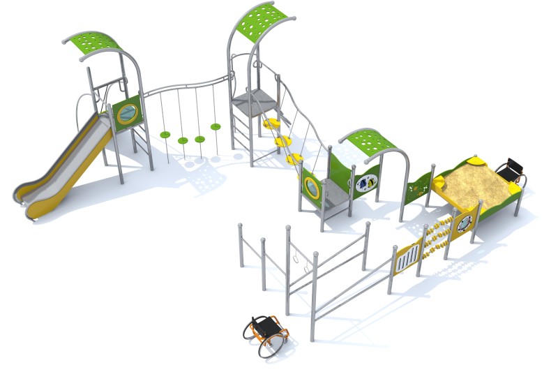 Inkluderende lekeapparater er utviklet for å gi barn med ulike forutsetninger mulighet til å delta i lek på like vilkår. Apparatenes utforming legger til rette for god tilgjengelighet, trygge bevegelser og varierte aktiviteter som stimulerer motorikk, balanse, koordinasjon og sanseopplevelser. Løsningene kan inkludere ramper, brede plattformer, lave innganger, støttehåndtak og sensoriske elementer som gjør det enklere for flere barn å delta samtidig. Dette bidrar til sosial samhandling, mestringsfølelse og felles lek på tvers av alder og funksjonsnivå.