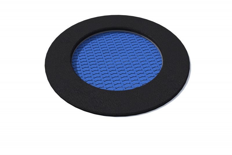 Rund trampoline beregnet for bruk på lekeplasser med intensiv bruk. Hoppematten er laget av svært holdbare Hercules-lameller med en bredde på minst 37 mm, med formen til bokstaven «V» og forsterket med ribber. Takket være den unike formen på lamellene er mellomrommene mellom matteelementene redusert til bare 7 mm, noe som hindrer små gjenstander, som nøkler eller mobiltelefoner, i å falle ned i trampolinen. Matten er tilgjengelig i 8 farger, og det er også mulig å lage grafikk på matten. Gummitrampolinekragen er tilgjengelig i 2 standardfarger og 23 spesialfarger. I tillegg kan et dekorativt mønster lages på kragen. Trampolinen kan utstyres med oppklappbart trekk som gjør det enkelt å rengjøre innvendig. Trampoline med sort eller rød krage (SBR gummi) Hoppeflate: 90cm