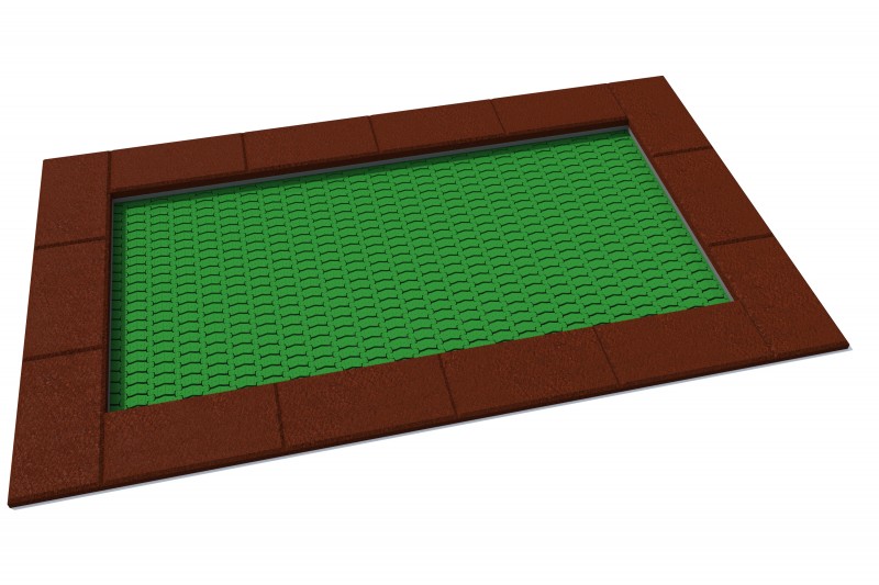 Rektangulær trampoline beregnet for bruk på lekeplasser med intensiv bruk. Hoppematten er laget av svært holdbare Hercules-lameller med en bredde på minst 37 mm, med formen til bokstaven «V» og forsterket med ribber. Takket være den unike formen på lamellene er mellomrommene mellom matteelementene redusert til bare 7 mm, noe som hindrer små gjenstander, som nøkler eller mobiltelefoner, i å falle ned i trampolinen. Matten er tilgjengelig i 8 farger, og det er også mulig å lage grafikk på matten. Gummitrampolinekragen er tilgjengelig i 2 standardfarger og 23 spesialfarger. I tillegg kan et dekorativt mønster lages på kragen. Trampolinen kan utstyres med oppklappbart trekk som gjør det enkelt å rengjøre innvendig. Trampoline med sort eller rød krage (SBR gummi) Hoppeflate 100x200cm