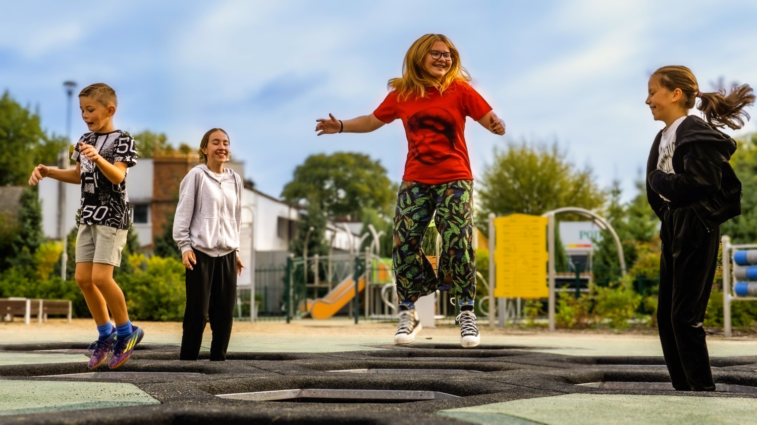 Sett med 5 trampoliner beregnet for bruk på lekeplasser med intensiv bruk. Serien består av 5 sekskantede (honningkake) formet trampoliner. Hoppematten er laget av svært holdbare Hercules-lameller med en bredde på minst 37 mm, med formen til bokstaven «V» og forsterket med ribber. Takket være den unike formen på lamellene er mellomrommene mellom matteelementene redusert til bare 7 mm, noe som hindrer små gjenstander, som nøkler eller mobiltelefoner, i å falle ned i trampolinen. Matten er tilgjengelig i 8 farger, og det er også mulig å lage grafikk på matten. Gummitrampolinekragen er tilgjengelig i 2 standardfarger og 23 spesialfarger. I tillegg kan et dekorativt mønster lages på kragen. Trampolinen kan utstyres med oppklappbart trekk som gjør det enkelt å rengjøre innvendig. Med sort eller rød krage (SBR-gummi)