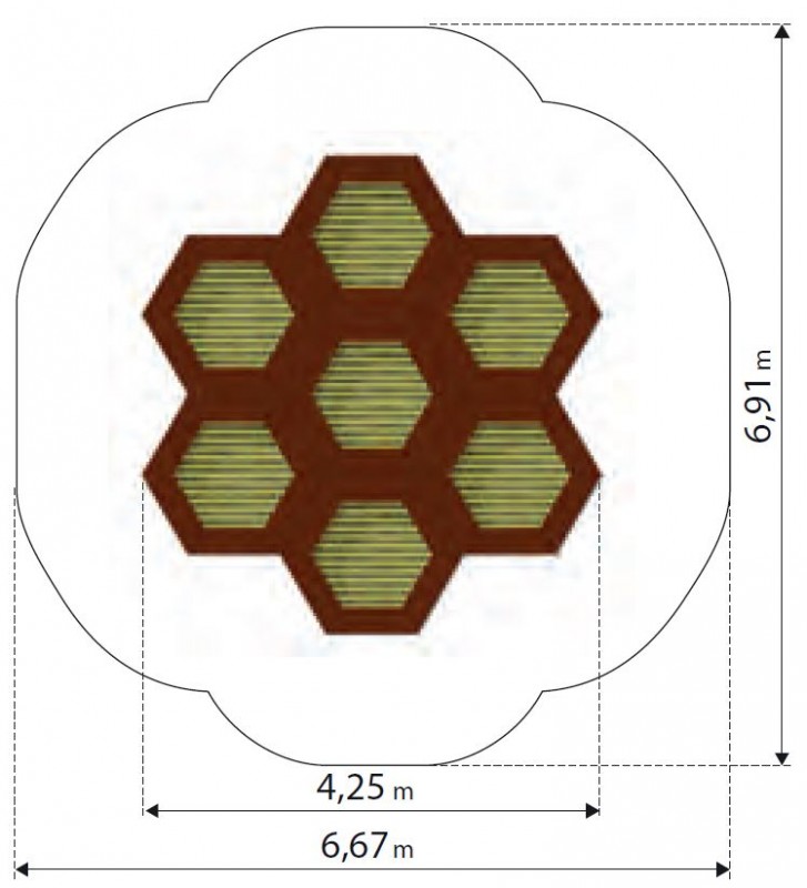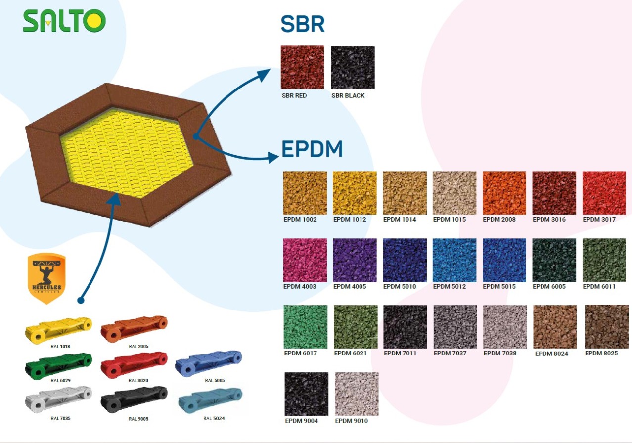 Sett med 7 trampoliner beregnet for bruk på lekeplasser med intensiv bruk. Settet består av 7 sekskantede (honningkake) trampoliner. Hoppematten er laget av svært holdbare Hercules-lameller med en bredde på minst 37 mm, med formen til bokstaven «V» og forsterket med ribber. Takket være den unike formen på lamellene er mellomrommene mellom matteelementene redusert til bare 7 mm, noe som hindrer små gjenstander, som nøkler eller mobiltelefoner, i å falle ned i trampolinen. Matten er tilgjengelig i 8 farger, og det er også mulig å lage grafikk på matten. Gummitrampolinekragen er tilgjengelig i 2 standardfarger og 23 spesialfarger. I tillegg kan et dekorativt mønster lages på kragen. Trampolinen kan utstyres med oppklappbart trekk som gjør det enkelt å rengjøre innvendig. Med sort eller rød krage (SBR-gummi)