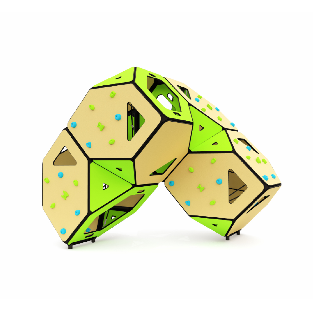 Klatregrepene lar barn takle små fysiske utfordringer på en morsom måte, utvikle styrke, balanse og strategisk tenkning mens de utforsker forskjellige klatreruter. Interiøret i modulene har klatretau som letter tilgangen og utvider mulighetene for lek, fremmer fysisk aktivitet og utforskning fra flere vinkler.