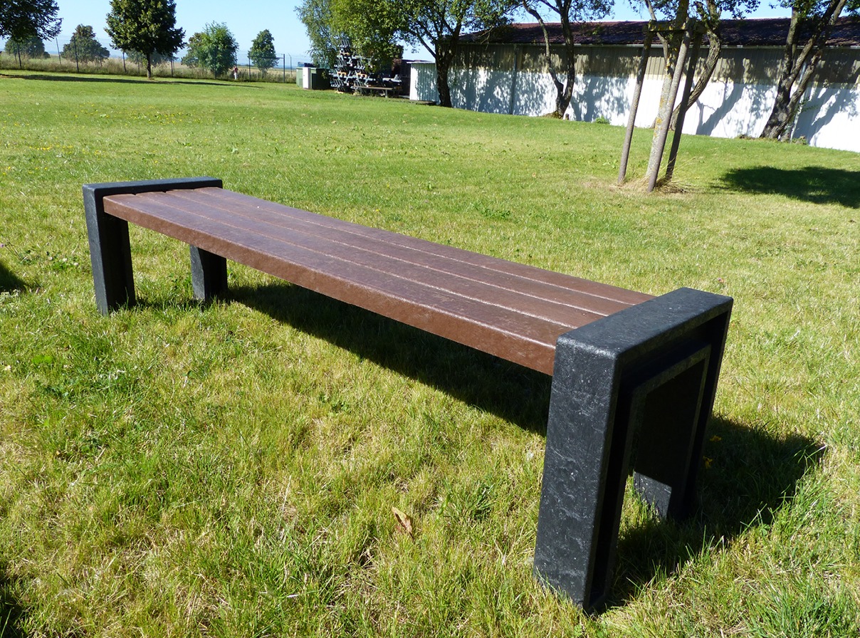 Enkel sittebenk uten rygg i miljøsertifisert kompositt.En enklere versjon fra Hyde Park serien, men likevell samme stilfulle og tradisjonelle design.