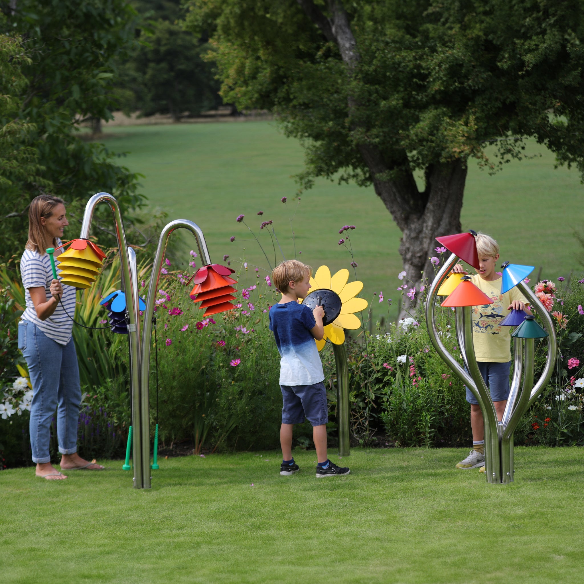 Inspirert av naturen er en utendørs musikk satt i naturinspirert design som samler melodiske og tonale elementer i én løsning. Settet er kuratert for raske suksessopplevelser for aldersblandede grupper: klare toner, rolig klang og intuitiv bruk med køller eller håndlek, avhengig av enheten. Det skulpturelle designet gjør scenografien til et synlig fokuspunkt langs stier, i gårdsrom og sansehager. Konstruksjonen er designet for utendørs bruk året rundt med lite vedlikehold. Sett opp i bue, klynge eller lineær progresjon etter område og publikumsflyt, og kombiner etter behov med dypere eller lysere enheter for å balansere sustain, puls og melodi. Designet støtter orientering, nysgjerrighet og oppholdstid: besøkende ser formen, hører en tone og blir værende. Bruk enkle øvelser som call-and-response, turtaking og korte mønstre for å starte grupper uten instruksjon. Balanser lydbildet ved å plassere de mest sustain-tunge driverne på kanten og de rytmiske nærmere staying-feltet. Materialer og overflater er valgt for daglig utendørsbruk året rundt, så rengjøring og drift forblir enkel.