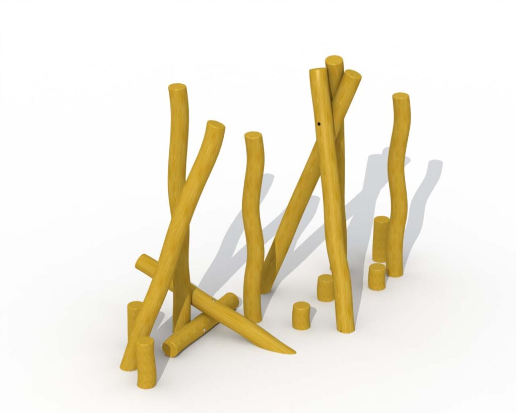 Lekeapparater produsert i Robinia kombinerer naturlig estetikk med høy funksjonalitet og slitestyrke. Robinia er et svært hardt og holdbart treslag som egner seg spesielt godt til utendørs lekeplasser, da det tåler vær, fukt og intensiv bruk over lang tid uten behov for kjemisk impregnering. Robinia har et organisk og naturpreget utseende som gjør at lekeapparatene passer godt inn i parker, skolegårder, barnehager og naturlekeplasser. Hver stolpe har sin egen form og struktur, noe som gir hvert apparat et unikt uttrykk. Robinia-konstruksjoner kan integrere ulike elementer som klatretau, nett, balansestokker, plattformer og rutsjebaner. Dette gir mange ulike lekemuligheter i ett og samme apparat og gjør lekeplassen mer variert og utfordrende.