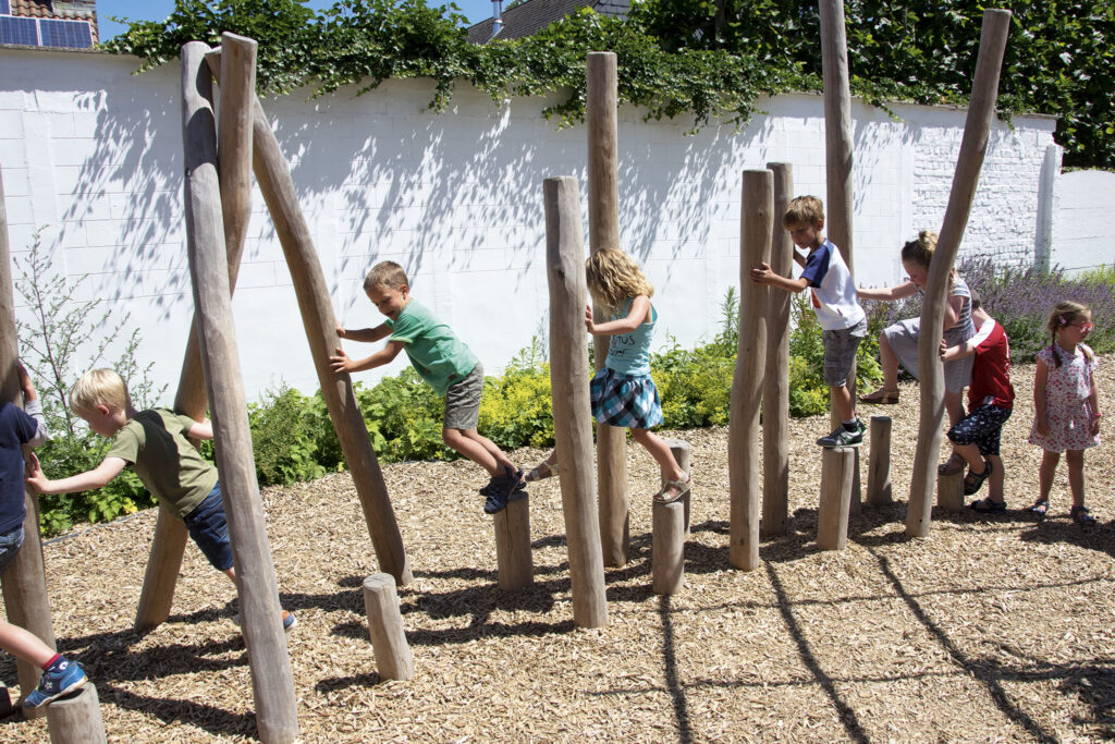 Lekeapparater produsert i Robinia kombinerer naturlig estetikk med høy funksjonalitet og slitestyrke. Robinia er et svært hardt og holdbart treslag som egner seg spesielt godt til utendørs lekeplasser, da det tåler vær, fukt og intensiv bruk over lang tid uten behov for kjemisk impregnering. Robinia har et organisk og naturpreget utseende som gjør at lekeapparatene passer godt inn i parker, skolegårder, barnehager og naturlekeplasser. Hver stolpe har sin egen form og struktur, noe som gir hvert apparat et unikt uttrykk. Robinia-konstruksjoner kan integrere ulike elementer som klatretau, nett, balansestokker, plattformer og rutsjebaner. Dette gir mange ulike lekemuligheter i ett og samme apparat og gjør lekeplassen mer variert og utfordrende.