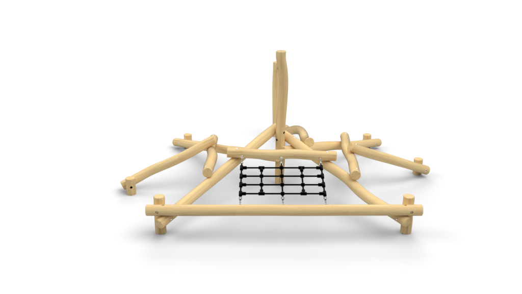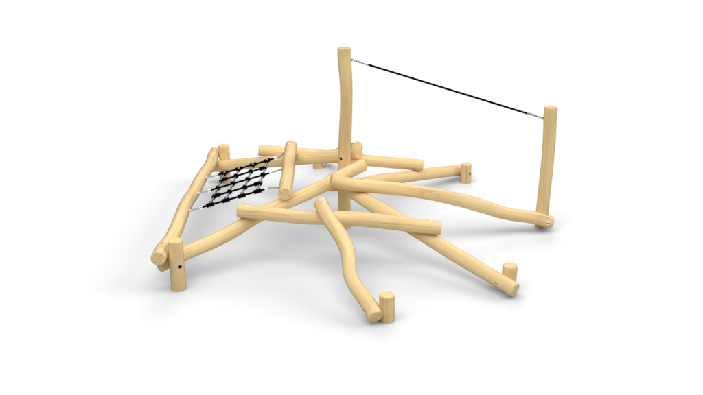 Lekeapparater produsert i Robinia kombinerer naturlig estetikk med høy funksjonalitet og slitestyrke. Robinia er et svært hardt og holdbart treslag som egner seg spesielt godt til utendørs lekeplasser, da det tåler vær, fukt og intensiv bruk over lang tid uten behov for kjemisk impregnering. Robinia har et organisk og naturpreget utseende som gjør at lekeapparatene passer godt inn i parker, skolegårder, barnehager og naturlekeplasser. Hver stolpe har sin egen form og struktur, noe som gir hvert apparat et unikt uttrykk. Robinia-konstruksjoner kan integrere ulike elementer som klatretau, nett, balansestokker, plattformer og rutsjebaner. Dette gir mange ulike lekemuligheter i ett og samme apparat og gjør lekeplassen mer variert og utfordrende.