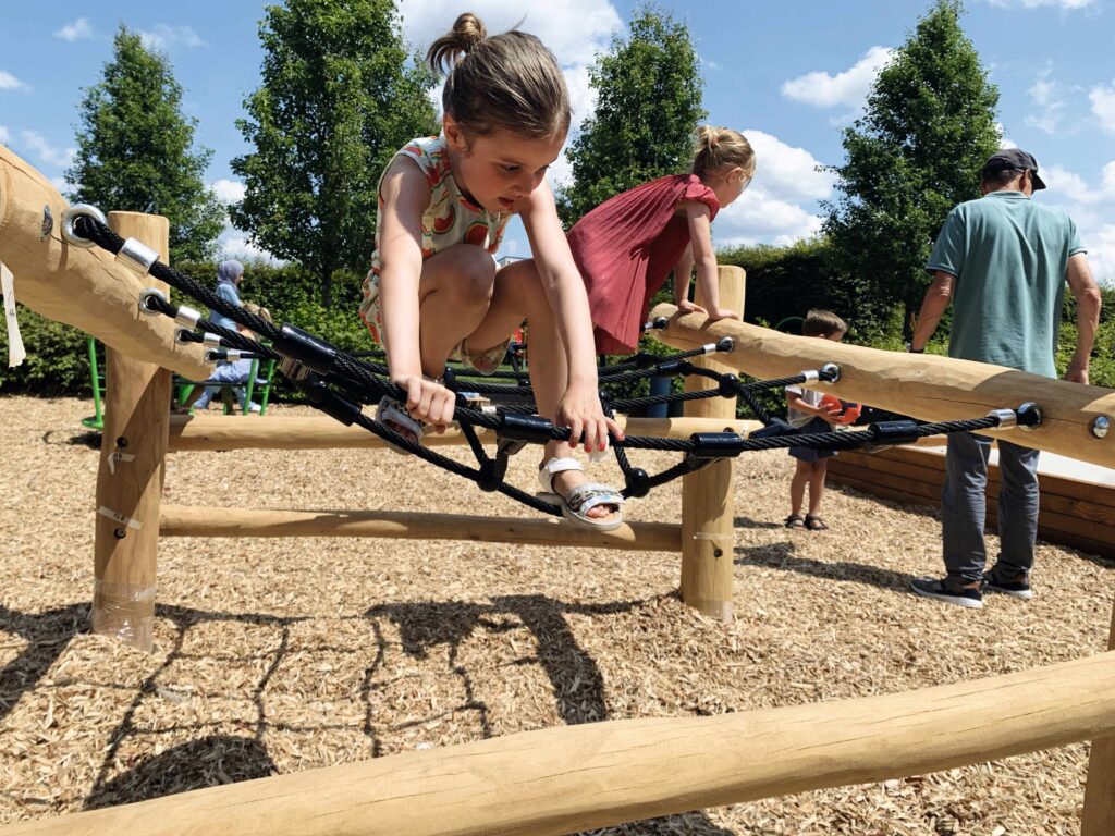 Lekeapparater for barn i alderen 4 til 12 år. Konstruksjonen er laget av runde trestolper i Robina. Nettet består av et tau laget av polypropylen (16 mm) med ekstra forsterkning.