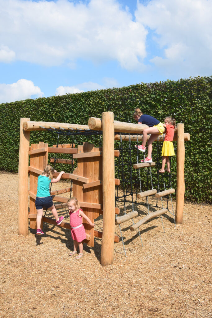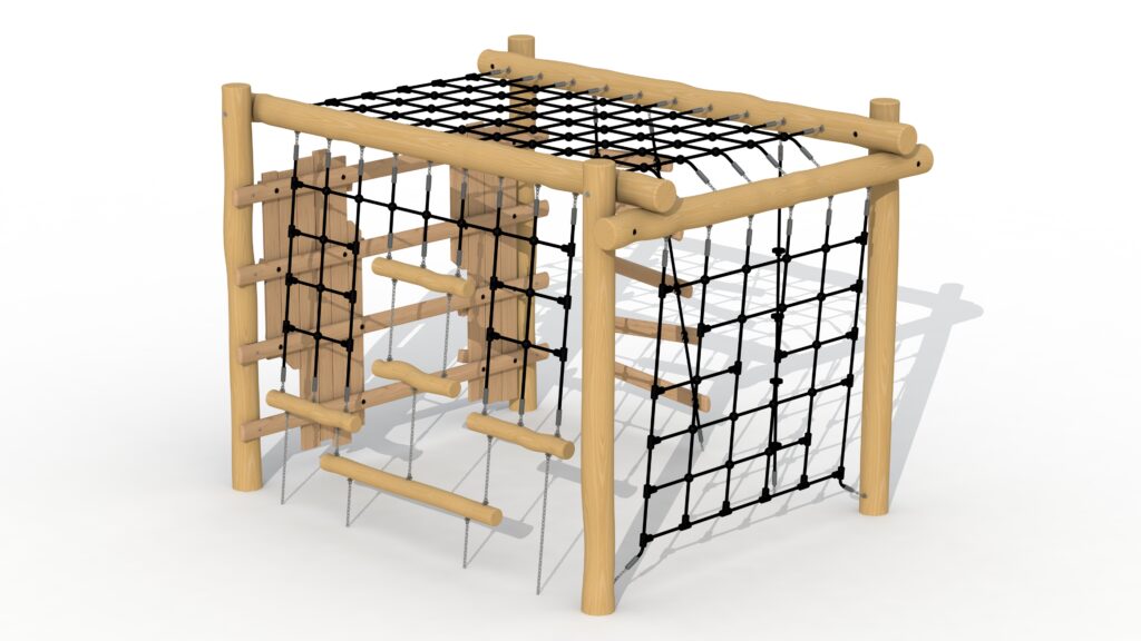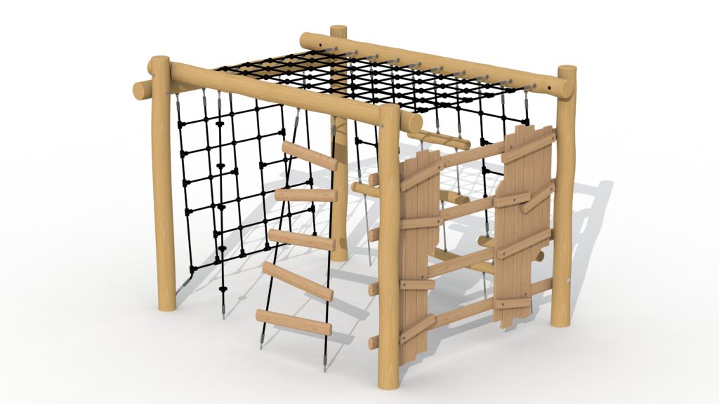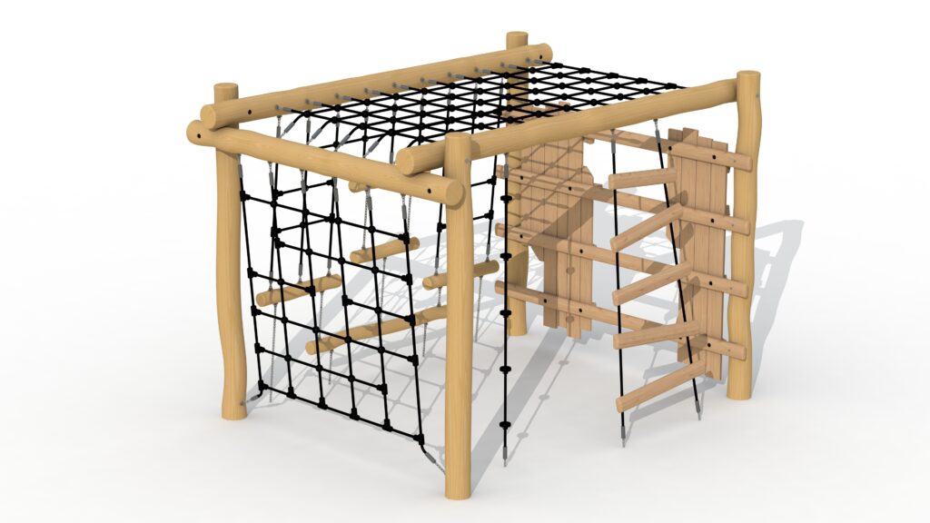 Lekeapparater produsert i Robinia kombinerer naturlig estetikk med høy funksjonalitet og slitestyrke. Robinia er et svært hardt og holdbart treslag som egner seg spesielt godt til utendørs lekeplasser, da det tåler vær, fukt og intensiv bruk over lang tid uten behov for kjemisk impregnering. Robinia har et organisk og naturpreget utseende som gjør at lekeapparatene passer godt inn i parker, skolegårder, barnehager og naturlekeplasser. Hver stolpe har sin egen form og struktur, noe som gir hvert apparat et unikt uttrykk. Robinia-konstruksjoner kan integrere ulike elementer som klatretau, nett, balansestokker, plattformer og rutsjebaner. Dette gir mange ulike lekemuligheter i ett og samme apparat og gjør lekeplassen mer variert og utfordrende.