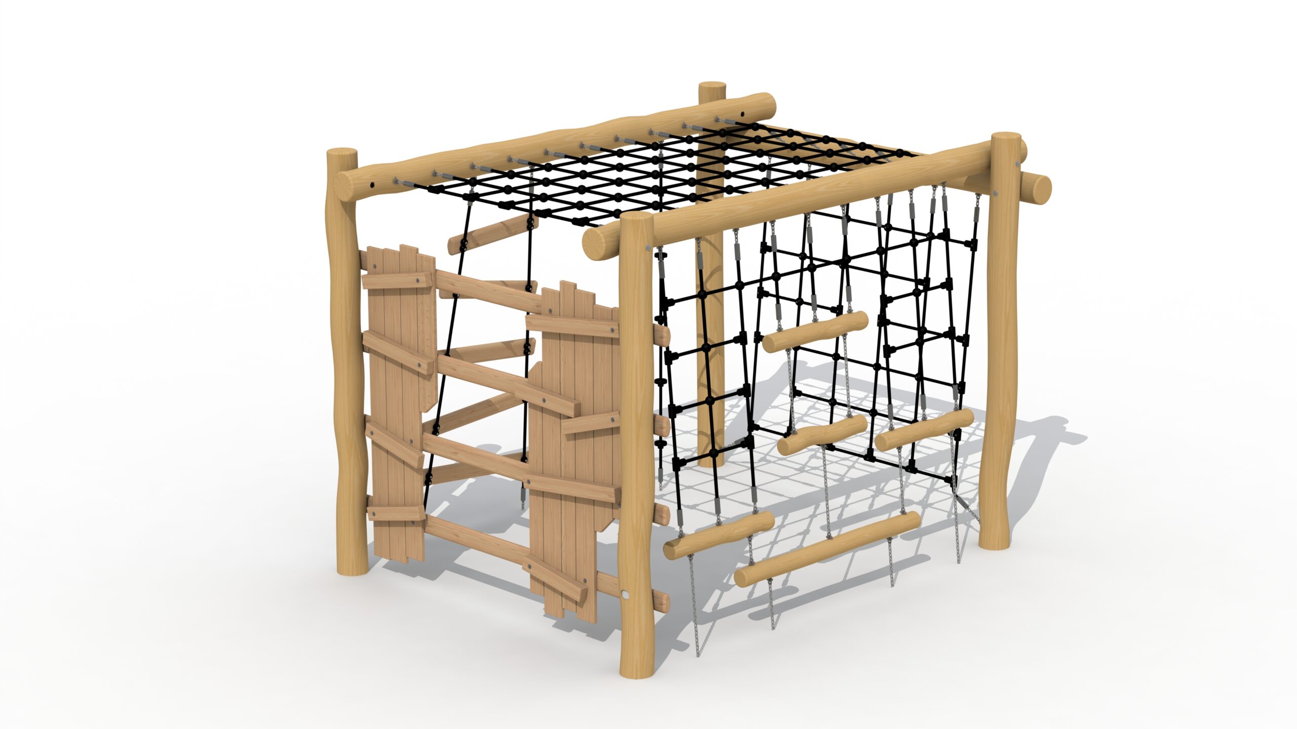 Robinia klatrestativ for barn i alderen 3 til 12 år. Svalens rede er plassert i et rektangel på 3 m ganger 2,3 m. Ulike spillelementer tilbys på hver side. Det er én side med klatrenett, én side med taustige og klatretau, én side med klatrevegg med lerkeplanker, og den siste siden har tre forskjellige klatrestiger. Taket har et klatrenett som kan sittes på eller krypes over. Robinia-stengene bør plasseres direkte i bakken med betong. Alle muttere og bolter er helt dekket med plasthetter.