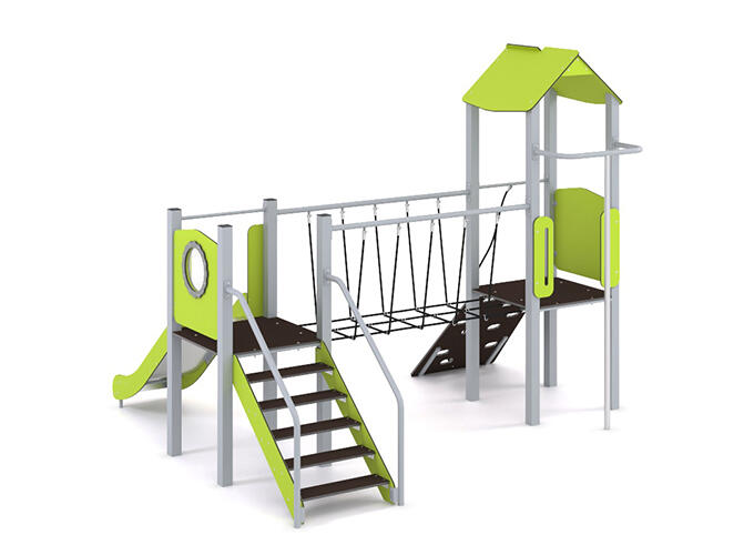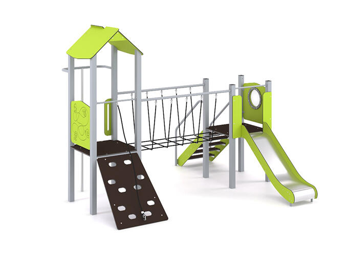 Apparatet inneholder en sklie, branntrapp, trapper, rampe, bro og lekpaneler. Velg mellom 12 standard farger på stål og 8 standard farger på HDPE. Andre farger på forespørsel.