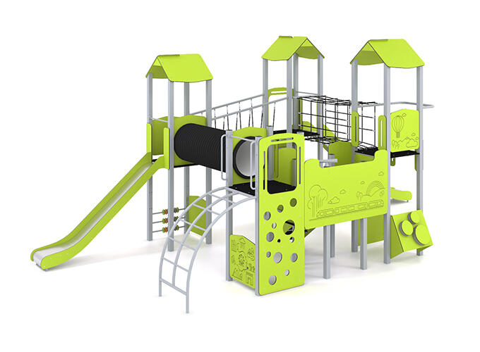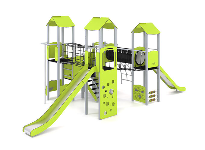 Apparatet inneholder blant annet sklier, brannmannstang, trapper, stige, tunnel, armgang, nett, ramper, trapper, broer, trommer, kikkert og lekepaneler. Velg mellom 12 standard farger på stål og 8 standard farger på HDPE. Andre farger på forespørsel.