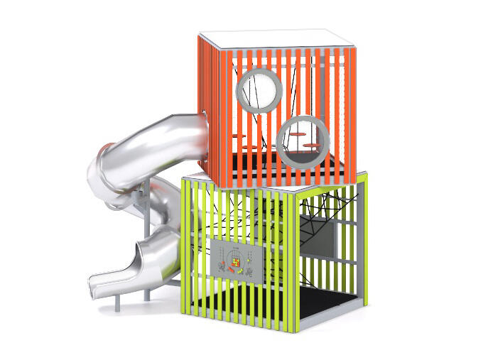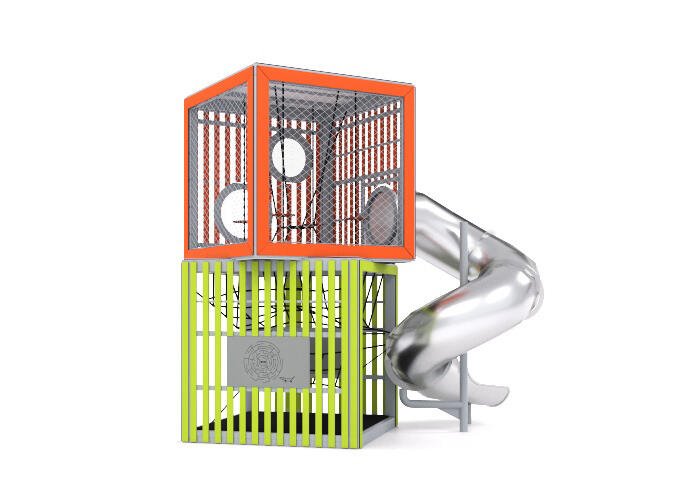 Kubetårnet vil definitivt tiltrekke seg barn, takket være den interessante ruten til de øvre etasjene, observasjonsvinduer, spillpaneler og tunnelsklien som går ned fra andre etasje. Velg mellom 12 standard farger på stål og 8 standard farger på HDPE. Andre farger på forespørsel.