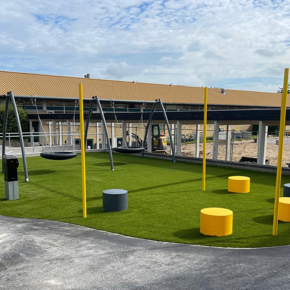 Kunstgress er et slitesterkt og vedlikeholdsvennlig underlag som gir et grønt og innbydende uttrykk året rundt. Det er utviklet for å tåle høy belastning og egner seg godt for lekeplasser, aktivitetsområder og uteanlegg. Underlaget gir god komfort og fremkommelighet, samtidig som det bidrar til et rent og ryddig uteområde uten gjørme og slitasje. Med gode drenerende egenskaper kan området tas i bruk raskt etter nedbør. Resultatet er en funksjonell og holdbar løsning som krever minimalt vedlikehold og gir et jevnt, attraktivt dekke over tid.