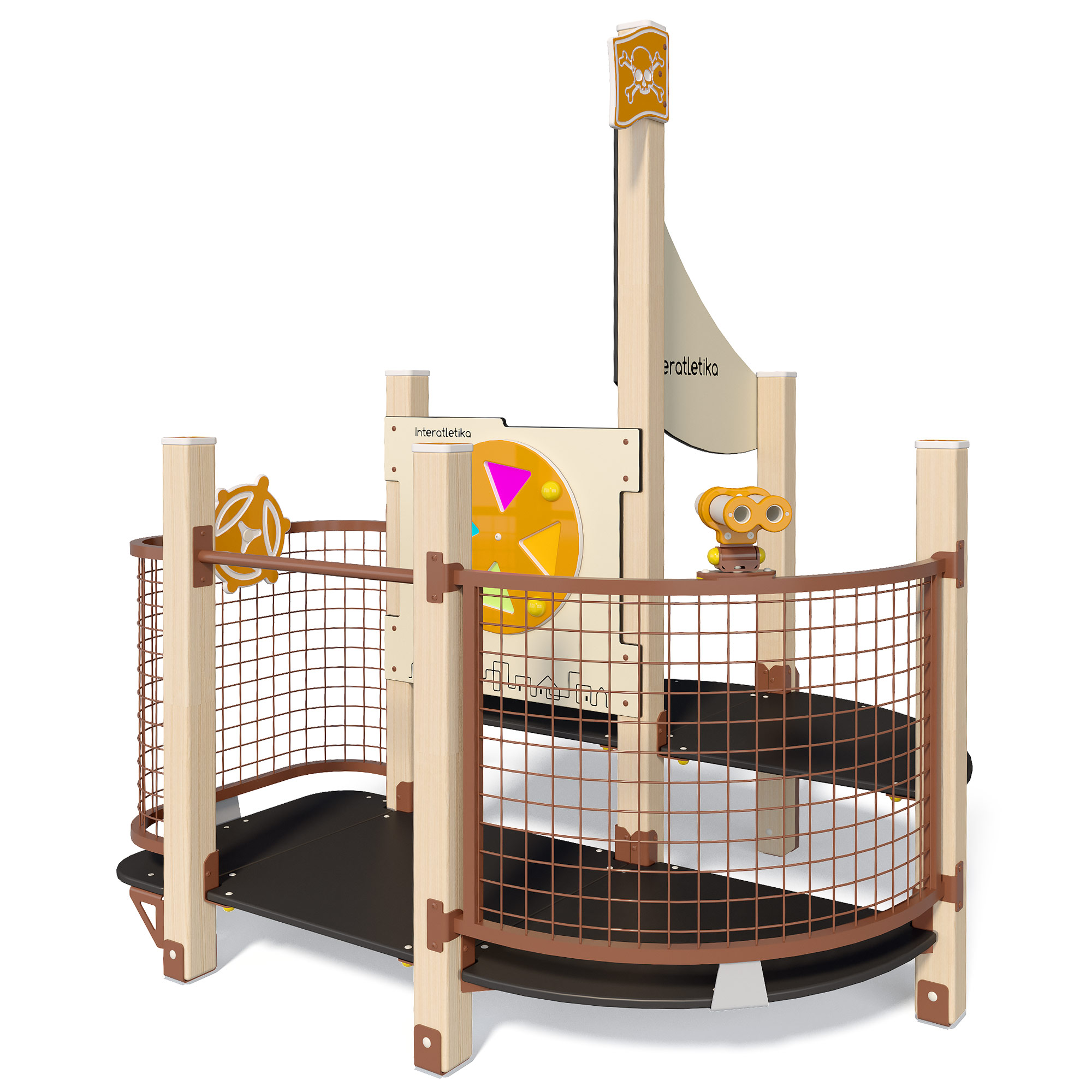 «Little Kids» Denne koslelige lekebåten kalt Kapteinens brygge innbyr til rolllek og sosialt samvær. Her er det platåer i to nivåer, utkikkstårn, ror og lekepanel.