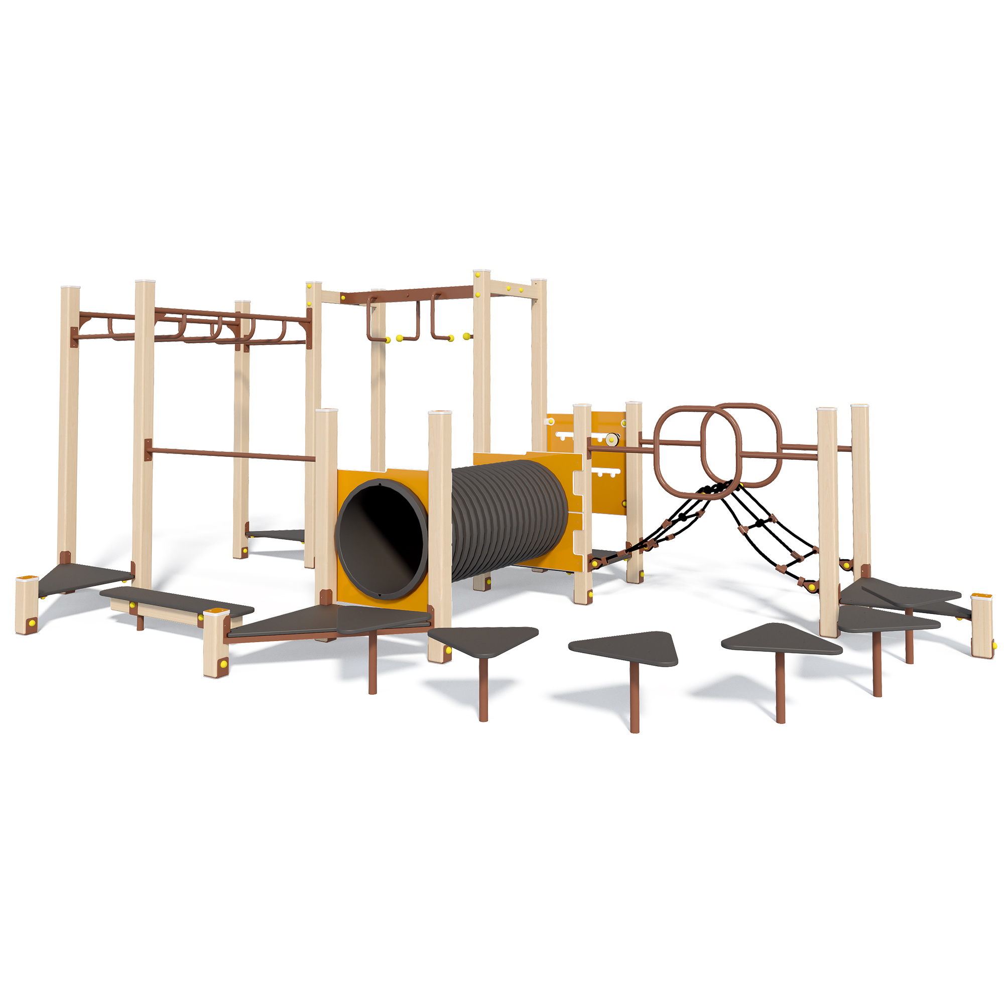 «Little Kids» Denne balansebanen er et unikt turnanlegg, som er rettet mot barn for både lek og øvelser her. Takket være en slik kombinasjon er strukturen også svært gunstig for helsen. Apparatet inneholder balansebom, balanseelementer, klatrenett, tunnelrør, armgang, lekepaneler m.m