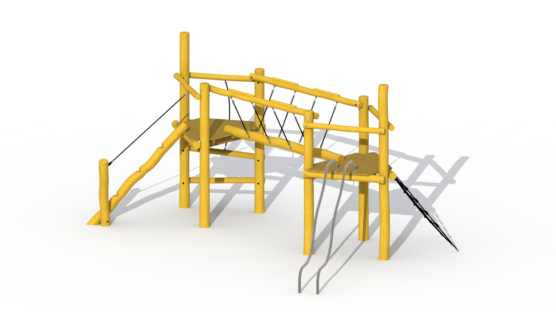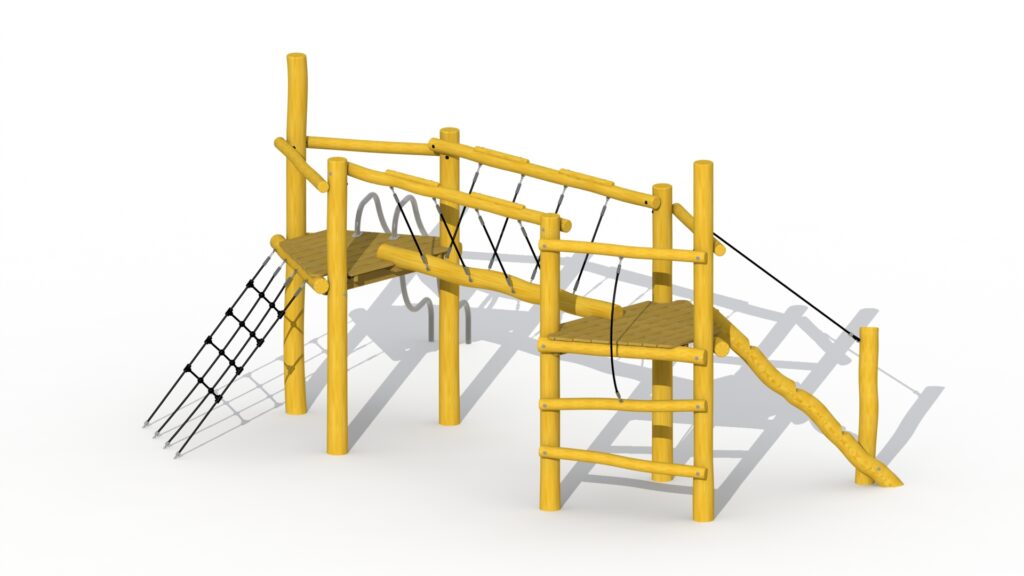 En kombinasjon av to plattformer som er forbundet med en balansebjelke. Plattformene er laget av lerk, resten av lekeutstyret er laget av robini. Den overbygde plattformen kan nås via et klatretau eller en balansebom som går oppover til plattformen. Den åpne plattformen kan nås via et klatrenett, og du kan forlate plattformen med rustfrie stålrør. Alle muttere og bolter er helt dekket med blomsterformede beskyttelseshetter. Denne konstruksjonen festes direkte i bakken ved bruk av betong.