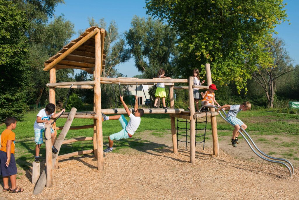 Lekeapparater produsert i Robinia kombinerer naturlig estetikk med høy funksjonalitet og slitestyrke. Robinia er et svært hardt og holdbart treslag som egner seg spesielt godt til utendørs lekeplasser, da det tåler vær, fukt og intensiv bruk over lang tid uten behov for kjemisk impregnering. Robinia har et organisk og naturpreget utseende som gjør at lekeapparatene passer godt inn i parker, skolegårder, barnehager og naturlekeplasser. Hver stolpe har sin egen form og struktur, noe som gir hvert apparat et unikt uttrykk. Robinia-konstruksjoner kan integrere ulike elementer som klatretau, nett, balansestokker, plattformer og rutsjebaner. Dette gir mange ulike lekemuligheter i ett og samme apparat og gjør lekeplassen mer variert og utfordrende.