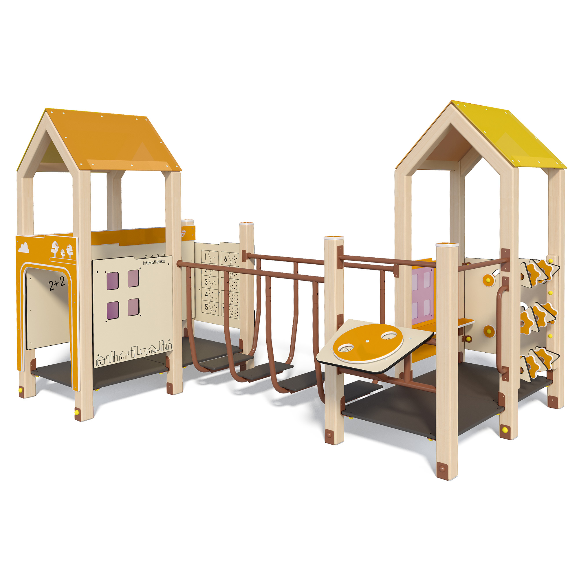 «Little Kids» Play House er konstruksjon som består av to tårn, som er forbundet med en bro. For mer underholdning er dette lekeanlegget fullt av gåter og aktiviteter for de minste barna.