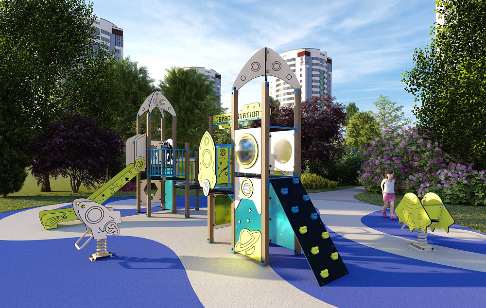 «Little Kids» Hvis barnet ønsker å bli astronaut når hen blir stor, kan denne lekeplassen bli hens første treningssted. Bard Tower har to tårn og inneholder mange lekefunksjoner som en sklie, klatrenett, handledisk, uppel vinduer, platåer i flere nivåer og lekepanelser.