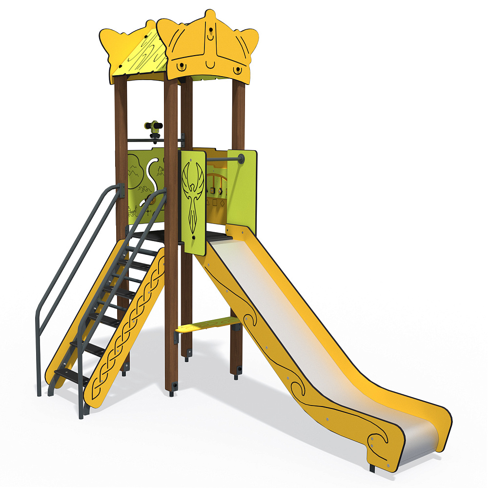 «Little Kids» Lekeapparatet Viking Tower er designet for utendørs aktivitet. Apparatet inneholder av en sklie, trapp, handledisk, utkikkspost og lekepanel.