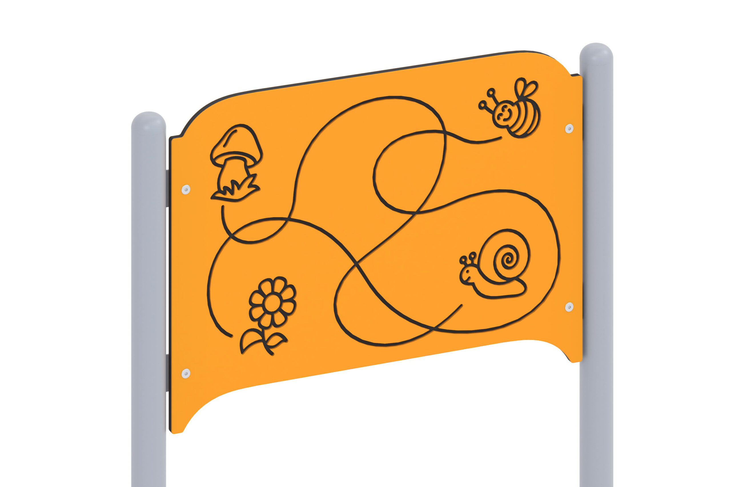 Ved å følge stien med fingeren, vil barna hjelpe bien å nå blomsten, og sneglen å nå soppen. Stativ bestilles separat. IIPZA3, IIPZA4,IIPZA0 eller IIPZA1- Velg mellom 12 standard farger på stål og 8 standard farger på HDPE. Andre farger på forespørsel.