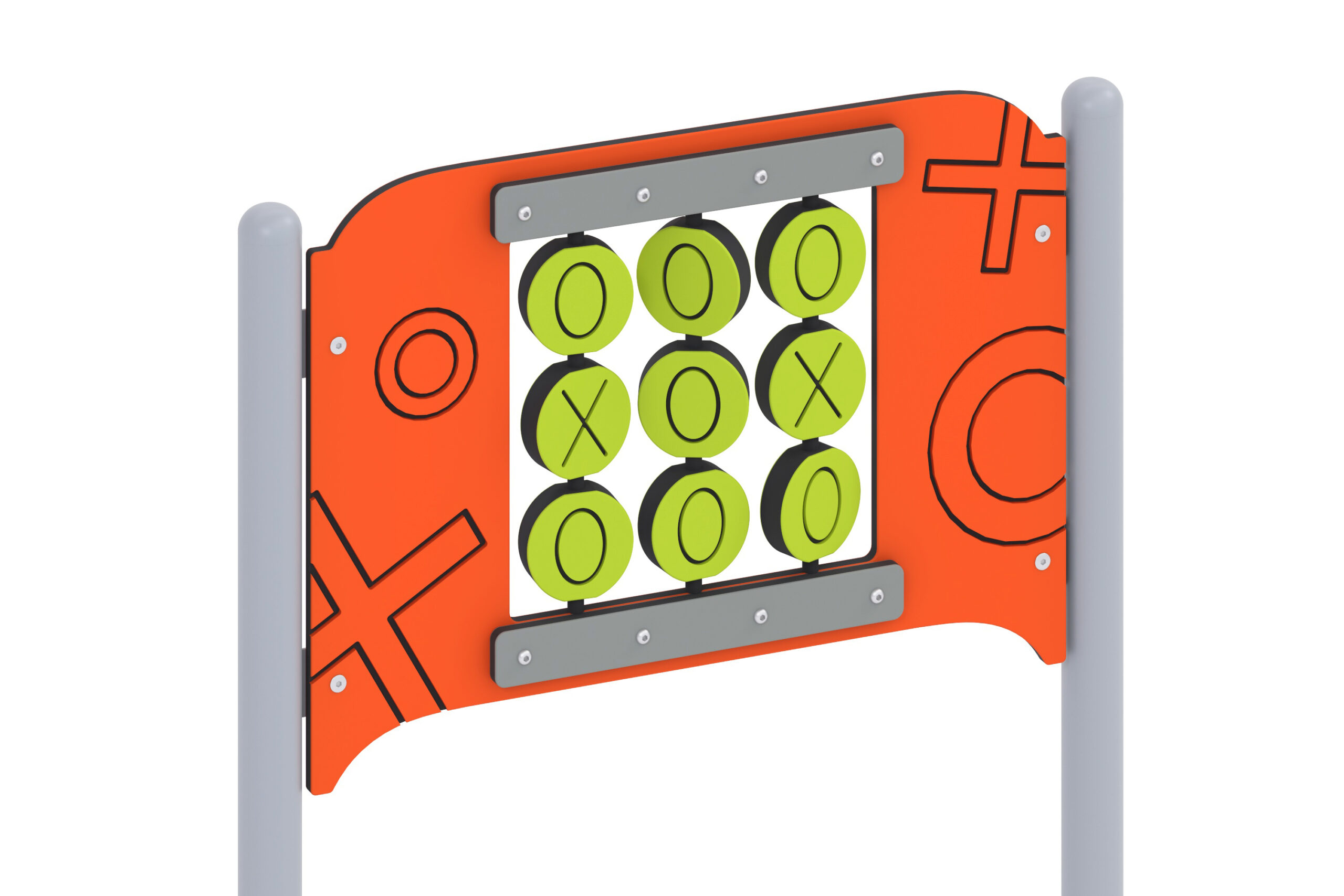 Panel med verdens mest populære spill «Tic Tac Toe». Barn kan leke ved å snu rundt elementer. Elementet lar deg utvikle finmotorikk, fantasi, oppmerksomhet og logisk tenkning. Stativ bestilles separat. IIPZA3, IIPZA4,IIPZA0 eller IIPZA1- Velg mellom 12 standard farger på stål og 8 standard farger på HDPE. Andre farger på forespørsel.