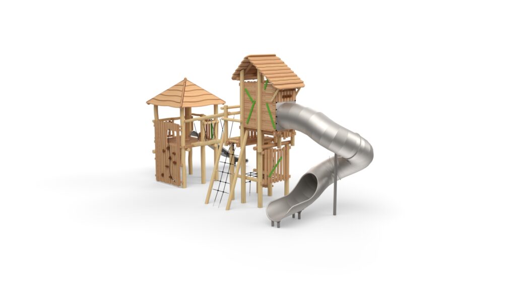 Knight’s Fortress er et høyt Robinia-leketårn som er koblet til magitårnet med en balansebane. Kombinasjonsversjonen gir spillverdi med klatrenett, klatrevegger, brannmannsstang, åpen sklie og spiralformet sklie. Under tårnet er det et hvileområde, ideelt for å slappe av eller sitte sammen.