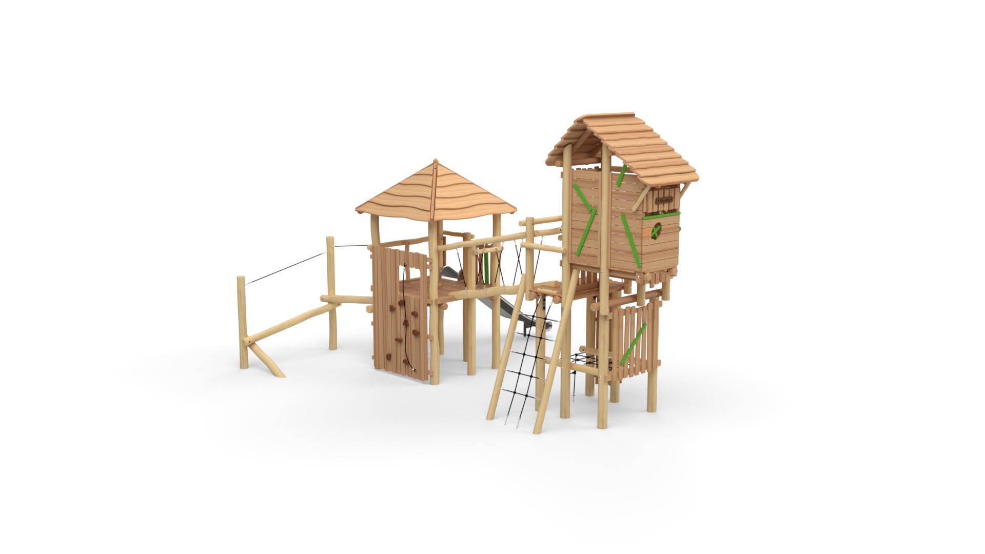 Knight’s Fortress er et høyt Robinia-leketårn som er koblet til magitårnet med en balansebane. Kombinasjonsversjonen gir lekeverdi med klatrenett, klatrevegger, brannmannsstang og spiralsklie. Under tårnet er det et hvileområde, ideelt for å slappe av eller sitte sammen.