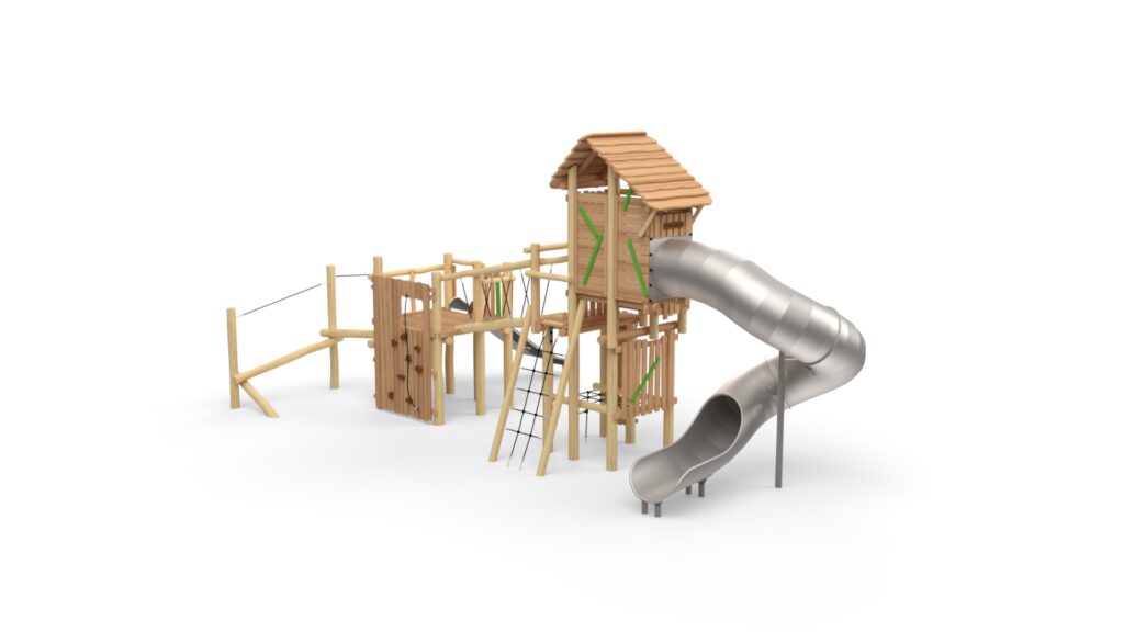 Knight’s Fortress er et høyt Robinia-leketårn som er koblet til magitårnet med en balansebane. Kombinasjonsversjonen gir spillverdi med klatrenett, klatrevegger, brannmannsstang, åpen sklie og spiralformet sklie. Under tårnet er det et hvileområde, ideelt for å slappe av eller sitte sammen.